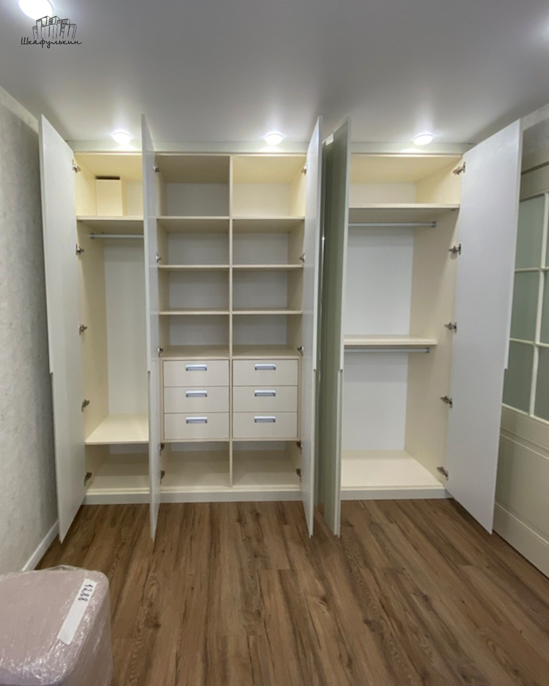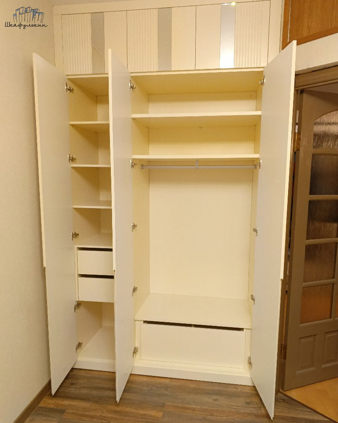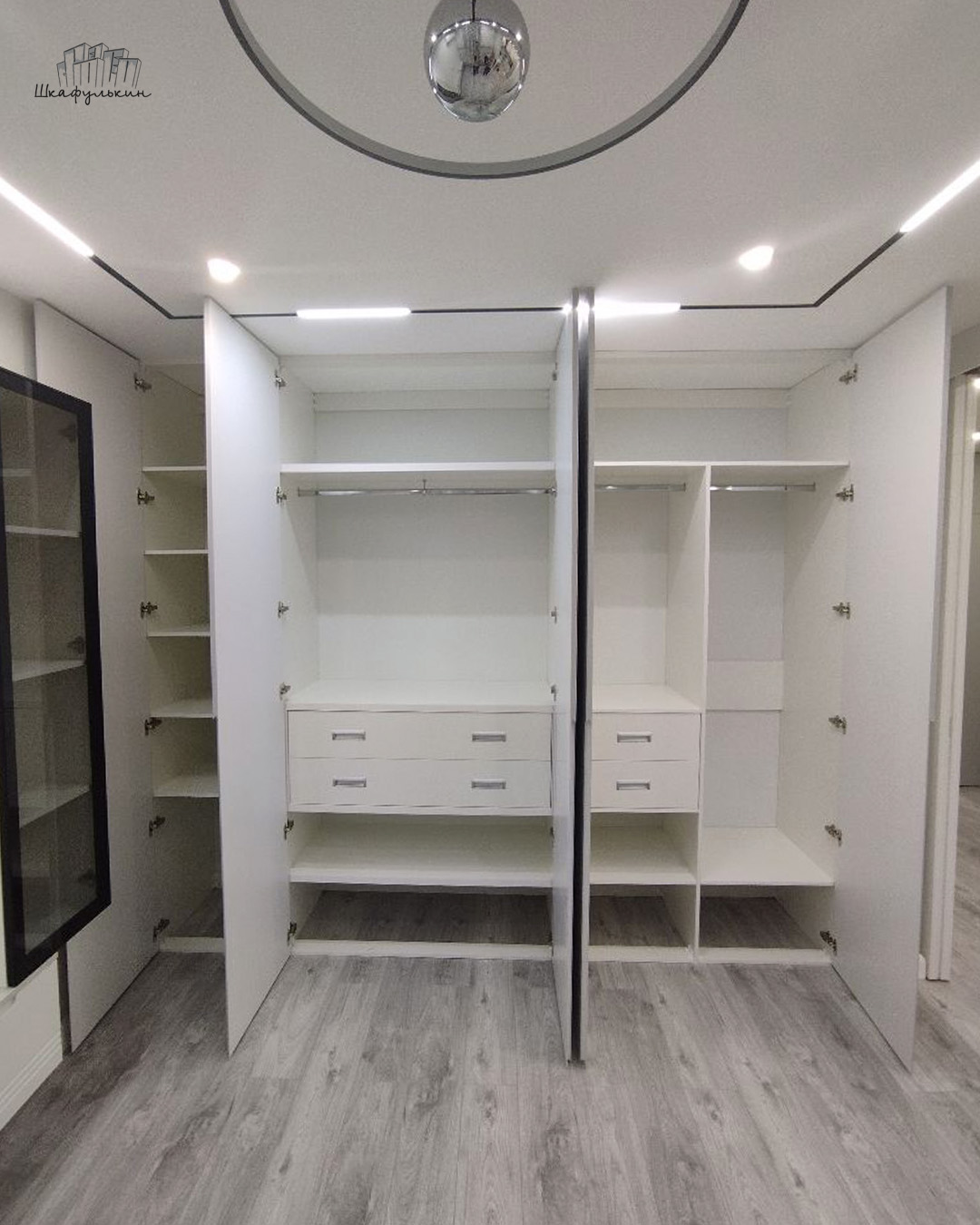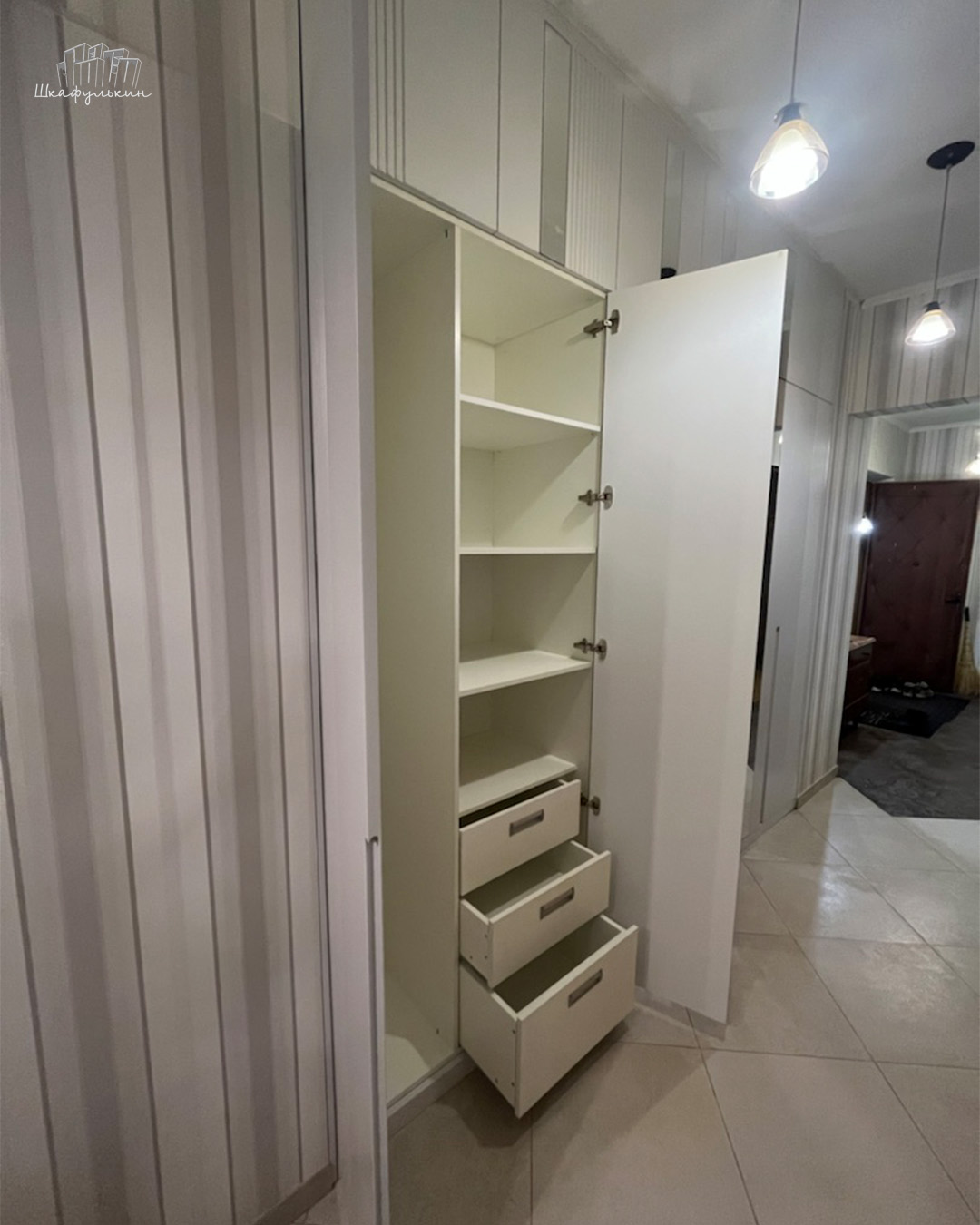 Фасады: МДФ крашенная по RAL с фрезеровкой, вставка зеркало.