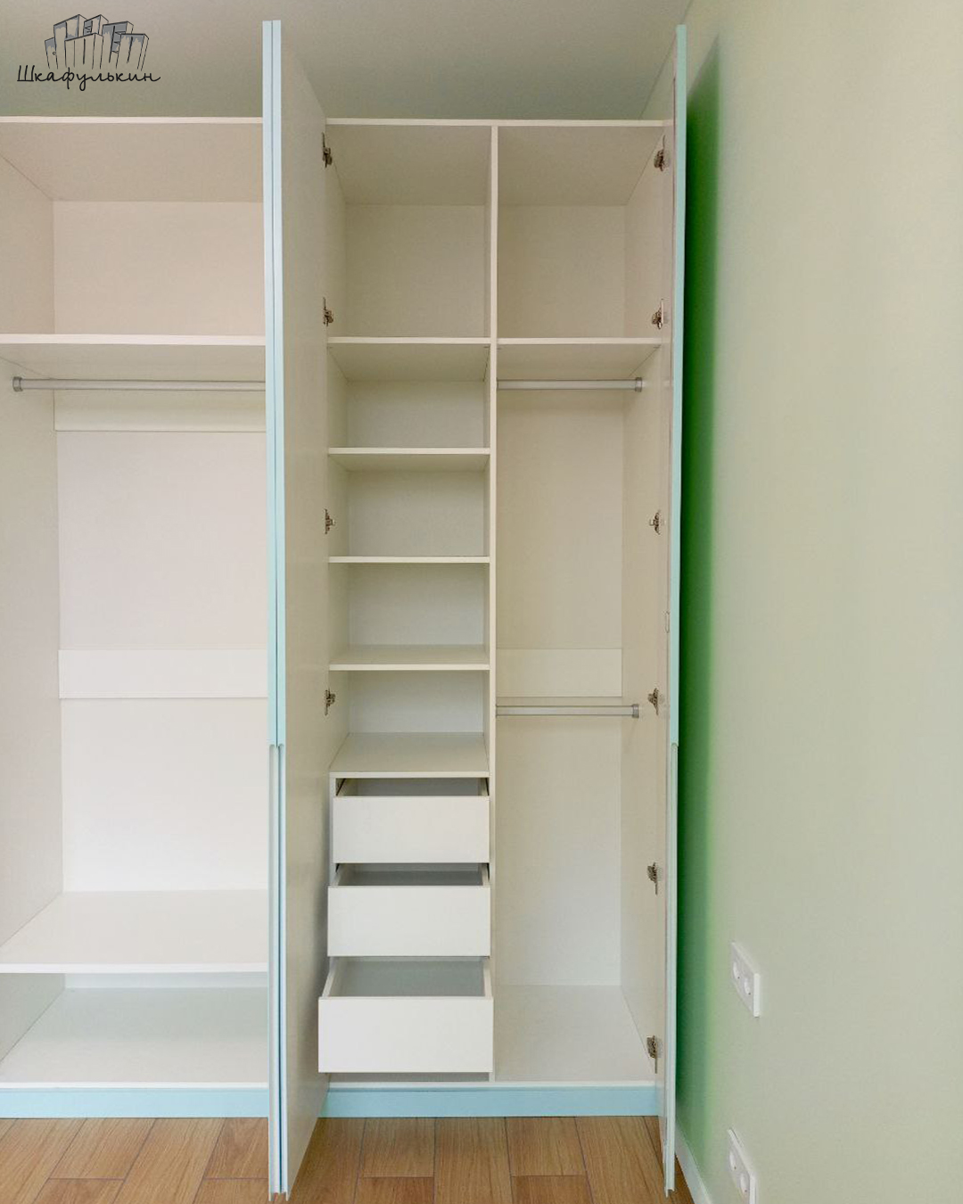 Мы очень любим работать с голубыми оттенками: они создают ощущение простора и визуально корректируют помещение.