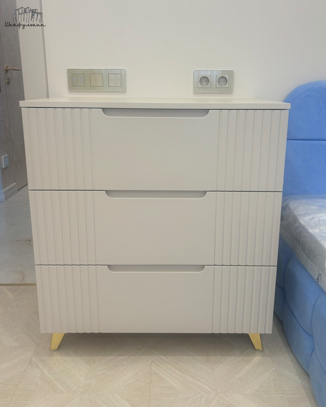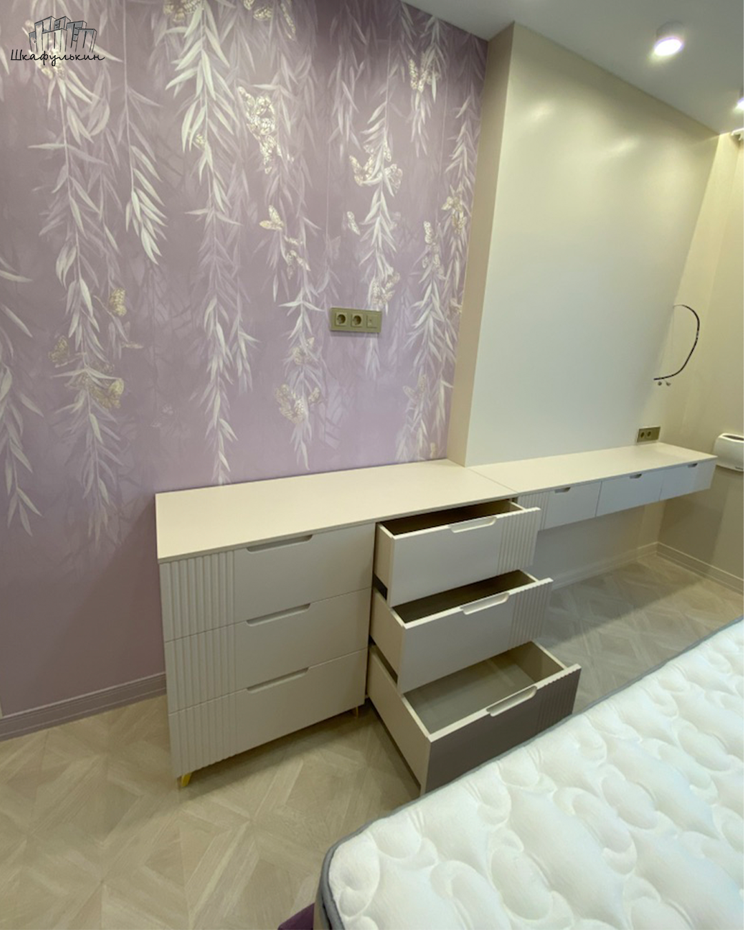 Фрезерованные фасады, лаконичные линии, морские мотивы в оформлении интерьера создают гармоничную и расслабленную атмосферу в спальне.