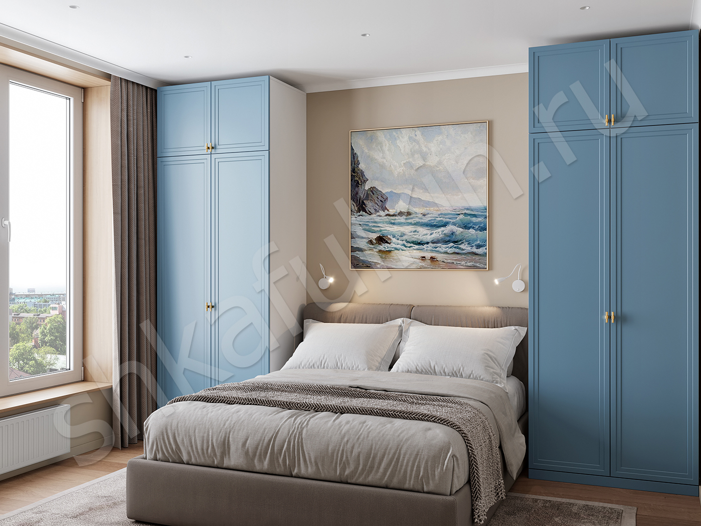 Корпус: ЛДСП Egger W980 ST2 белый.Фасад: МДФ с фрезеровкой, крашенный по RAL 5024.