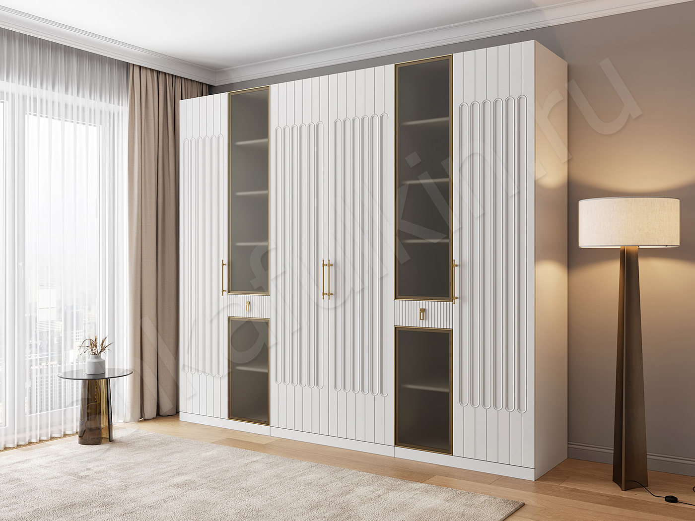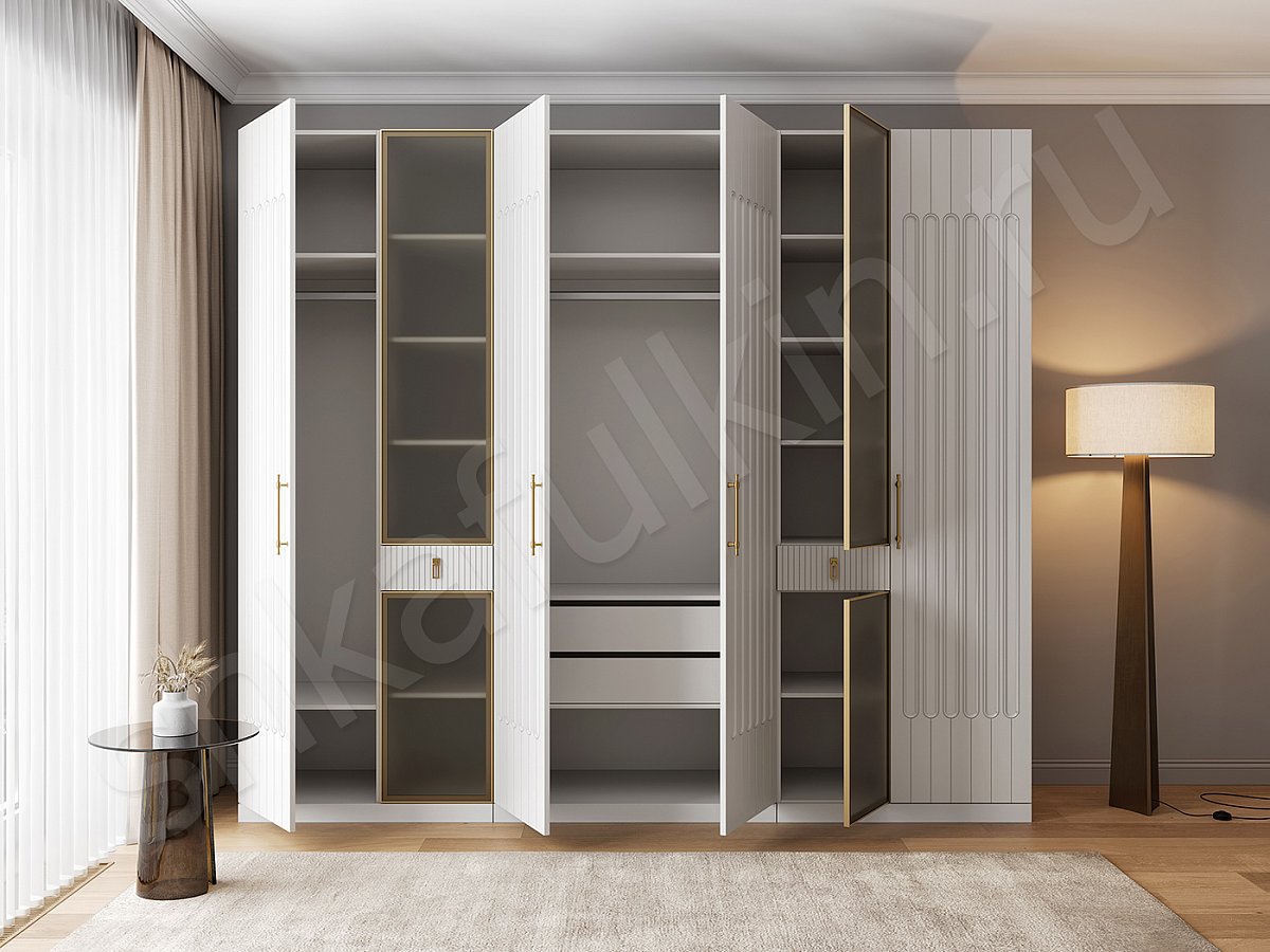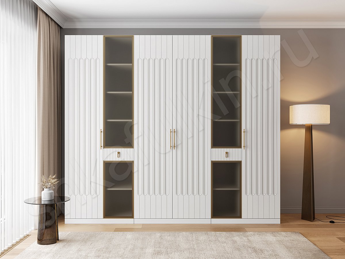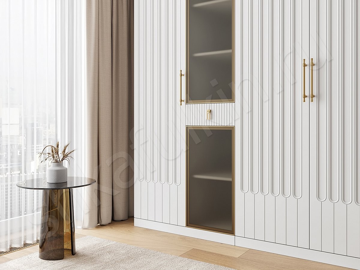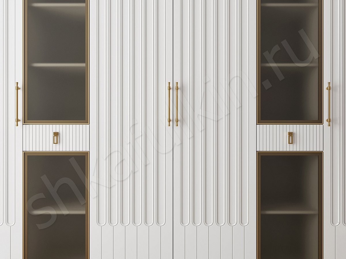 Фасады: алюминиевая рама с матовым стеклом, цвет золото.