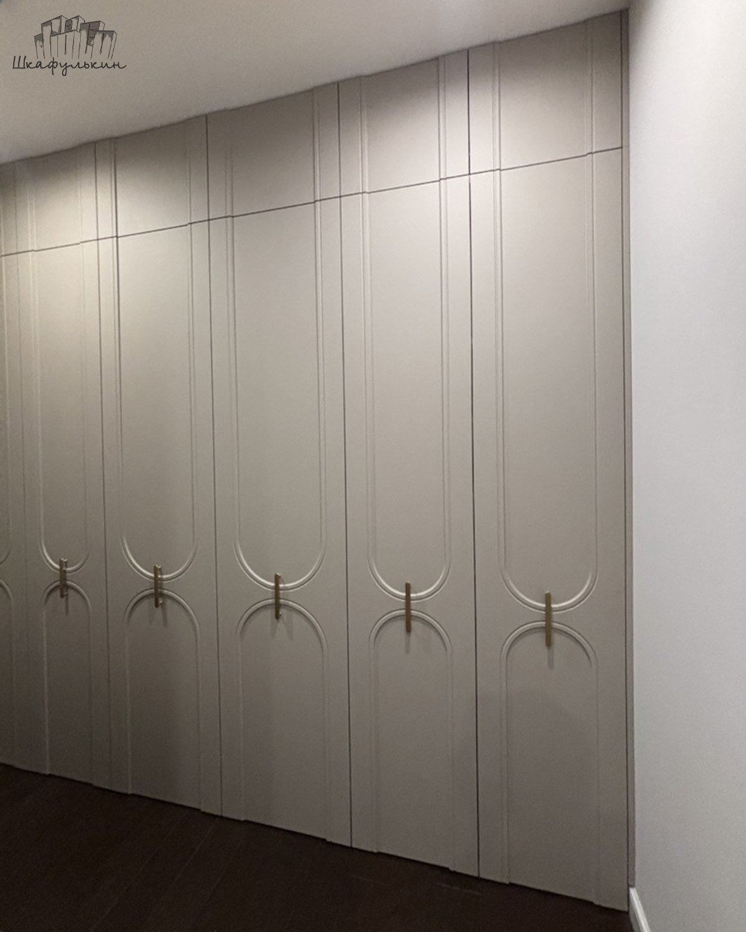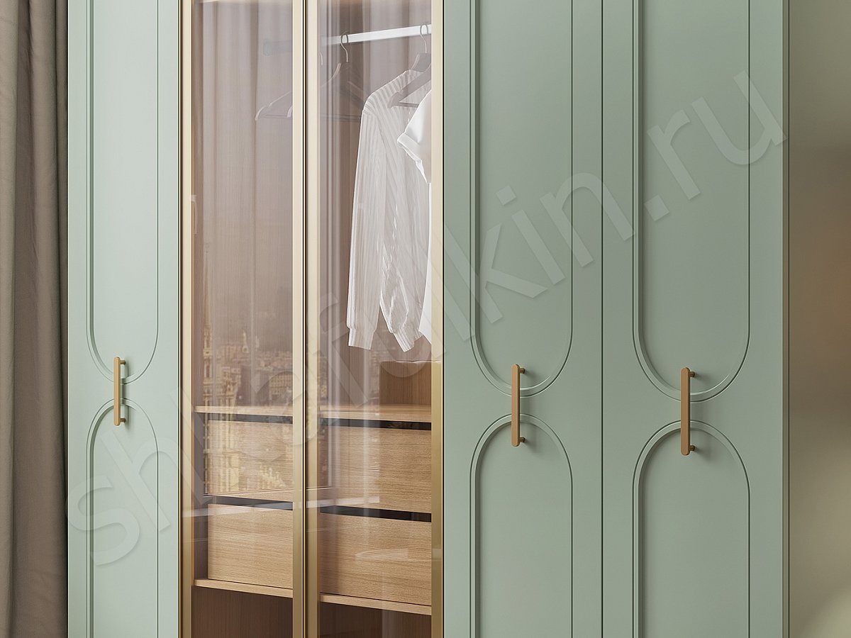 Комбинированные фасады — это игра контрастов: фрезерованные глухие и гладкие стеклянные, которые создают визуальный баланс и подчёркивают индивидуальность пространства. Мы добавили золотые элементы, в виде ручек и профиля, чтобы создать акцент на элегантности.