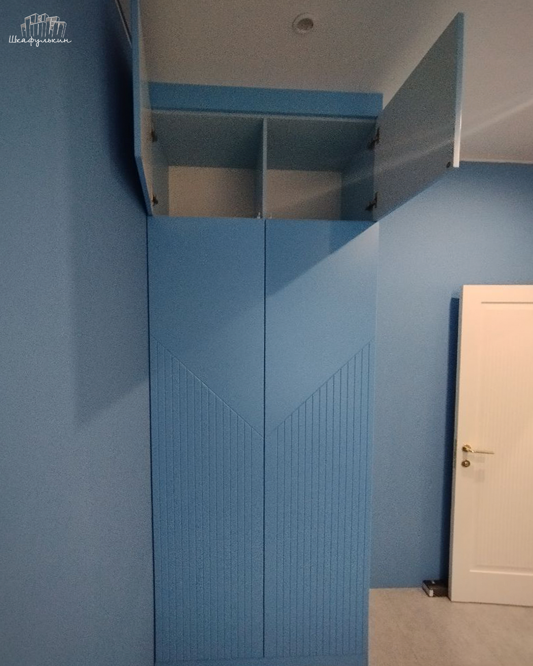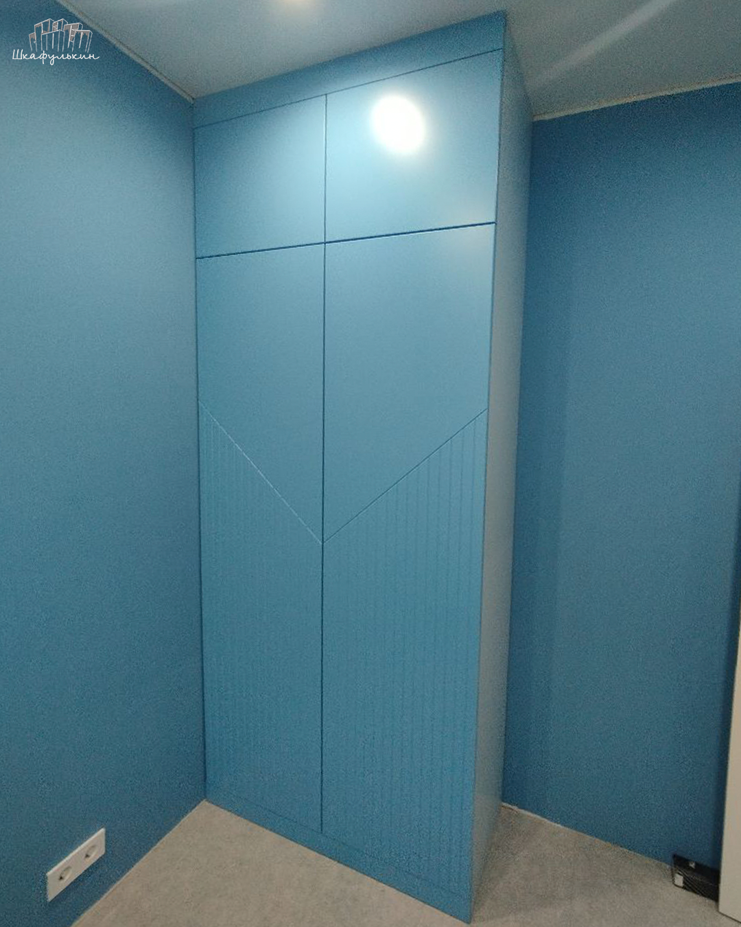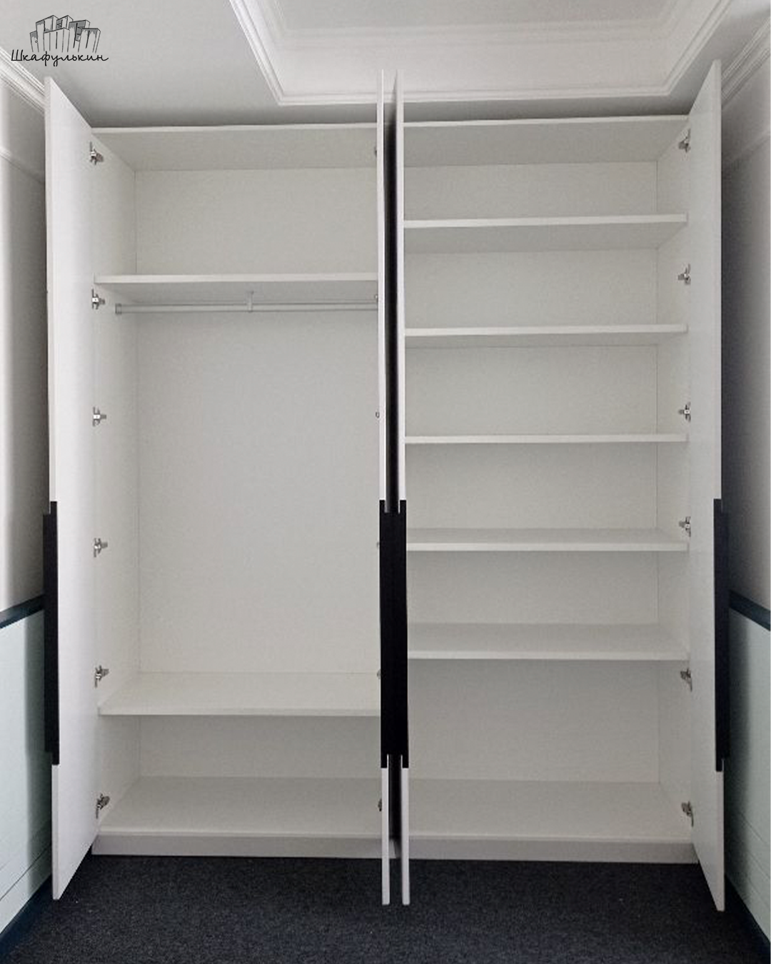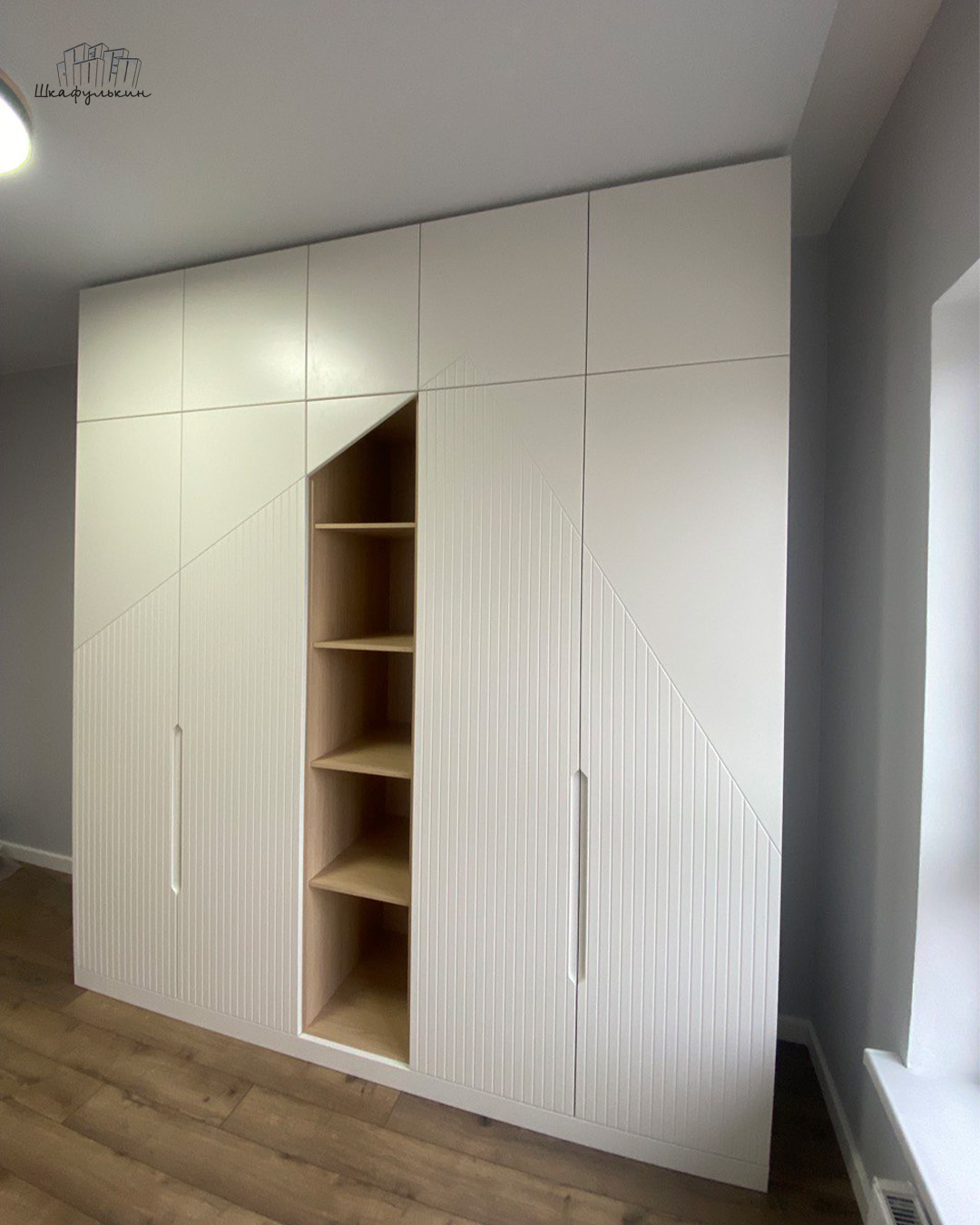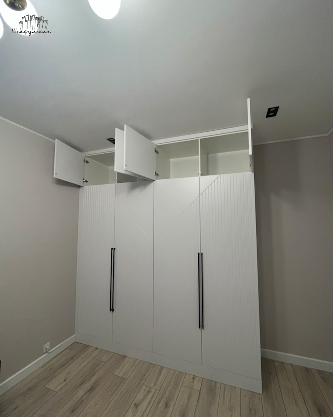 Общие размеры шкафа со стеллажом: 2580x2500x570 мм.