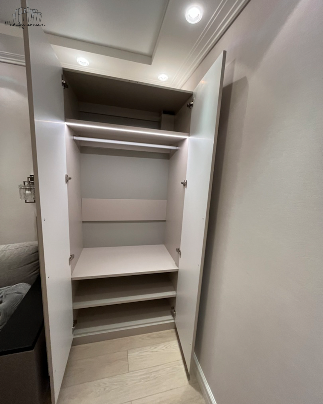 Размеры шкафа 2х створчатого шкафа: 1100х2500х570 мм.