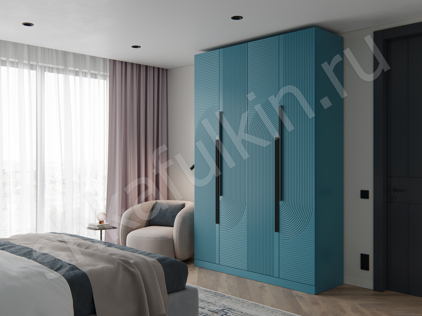 Фасады: МДФ с фрезеровкой, крашенная по NCS.