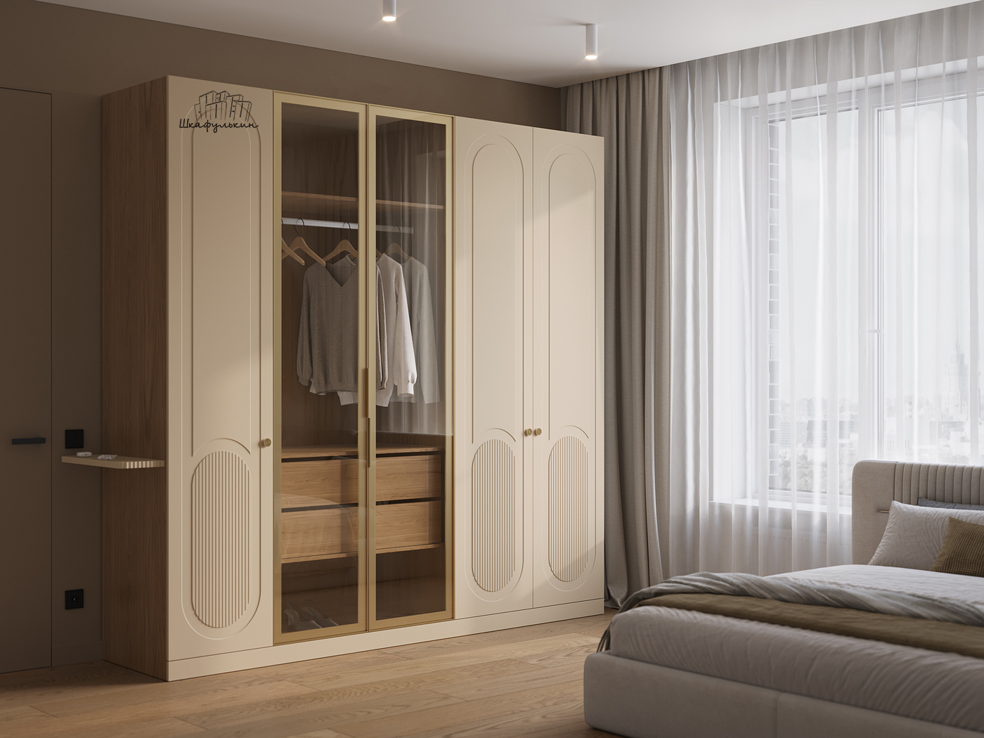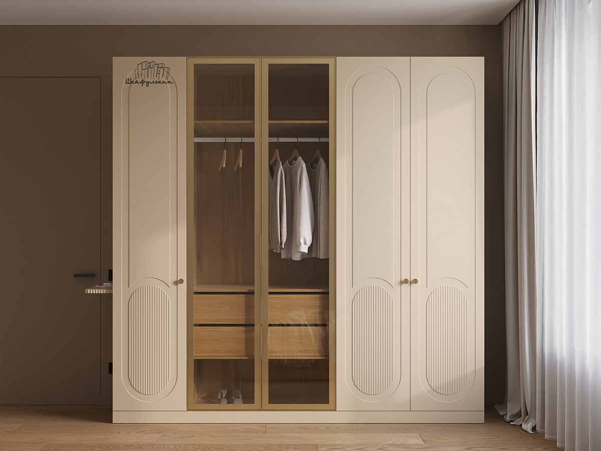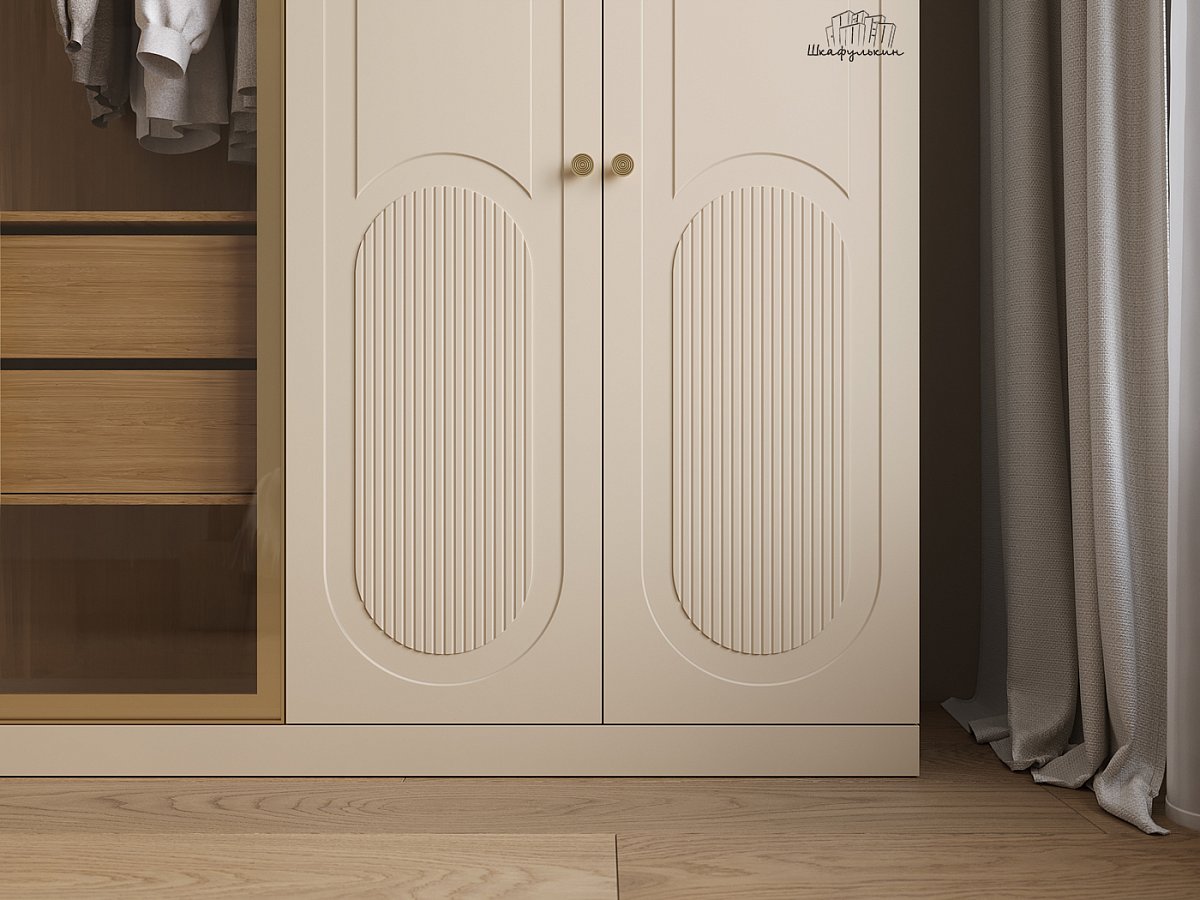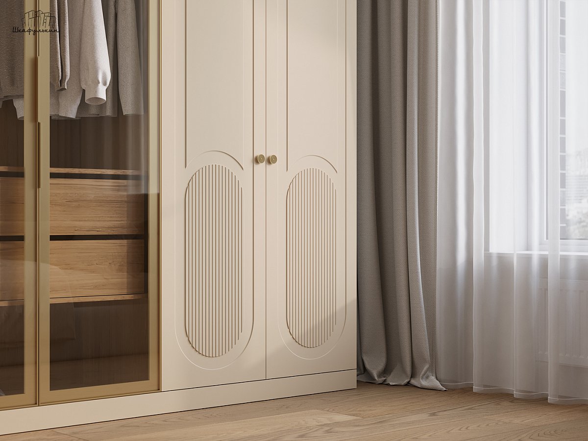 Фасады: МДФ с фрезеровкой, крашенная по NCS со вставкой стекло.