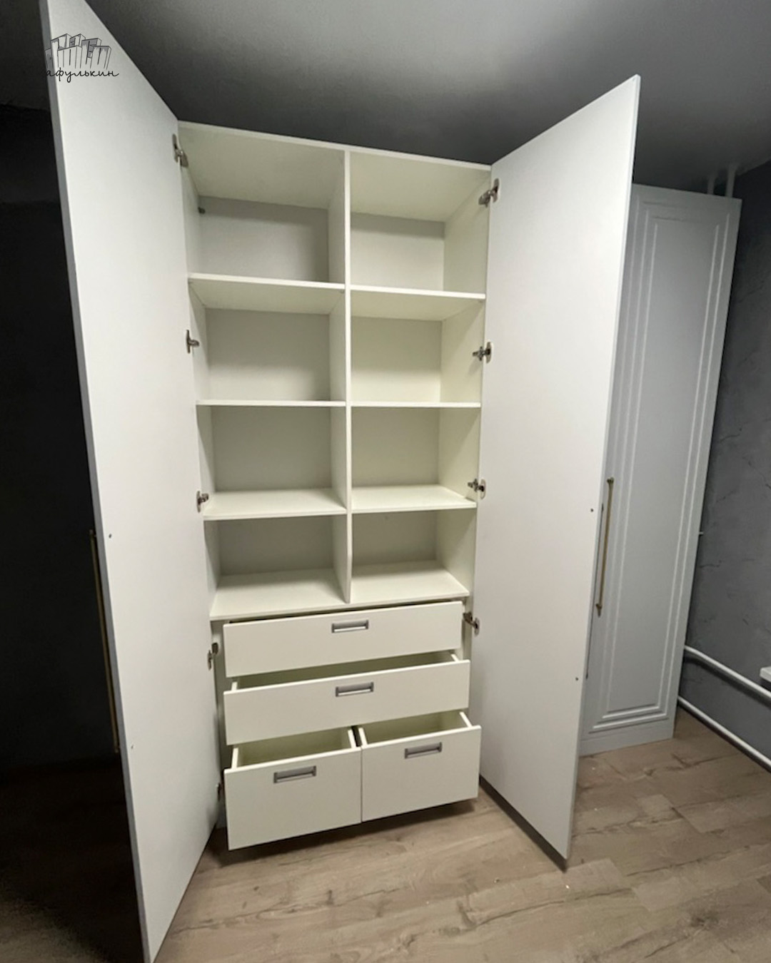 Фасады: МДФ с фрезеровкой, крашенная по NCS.