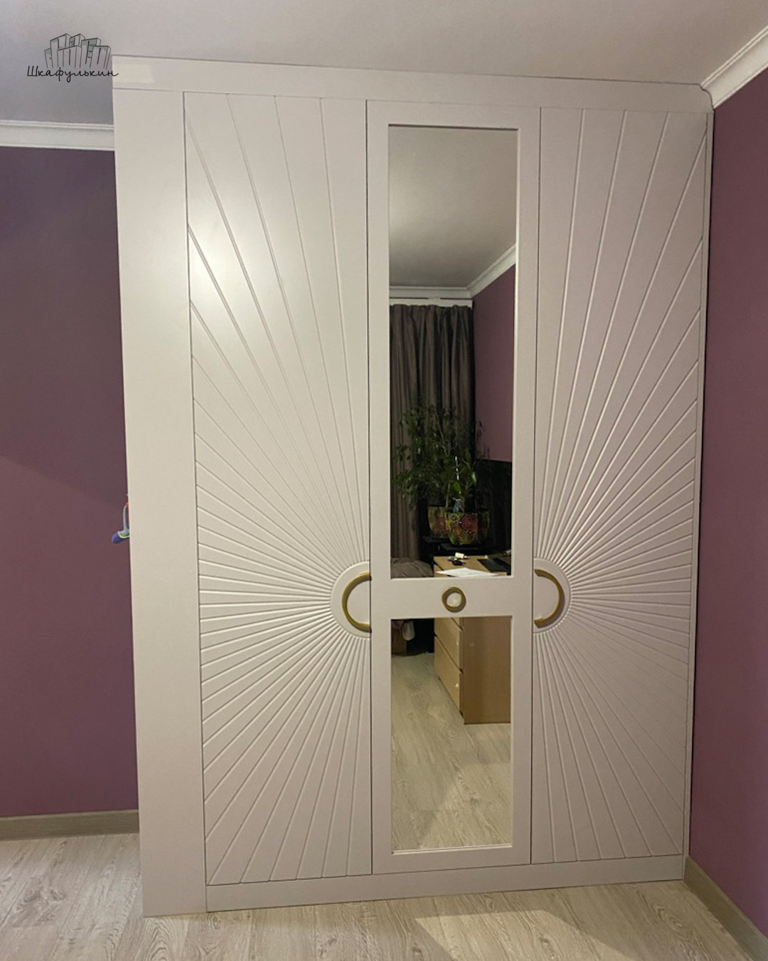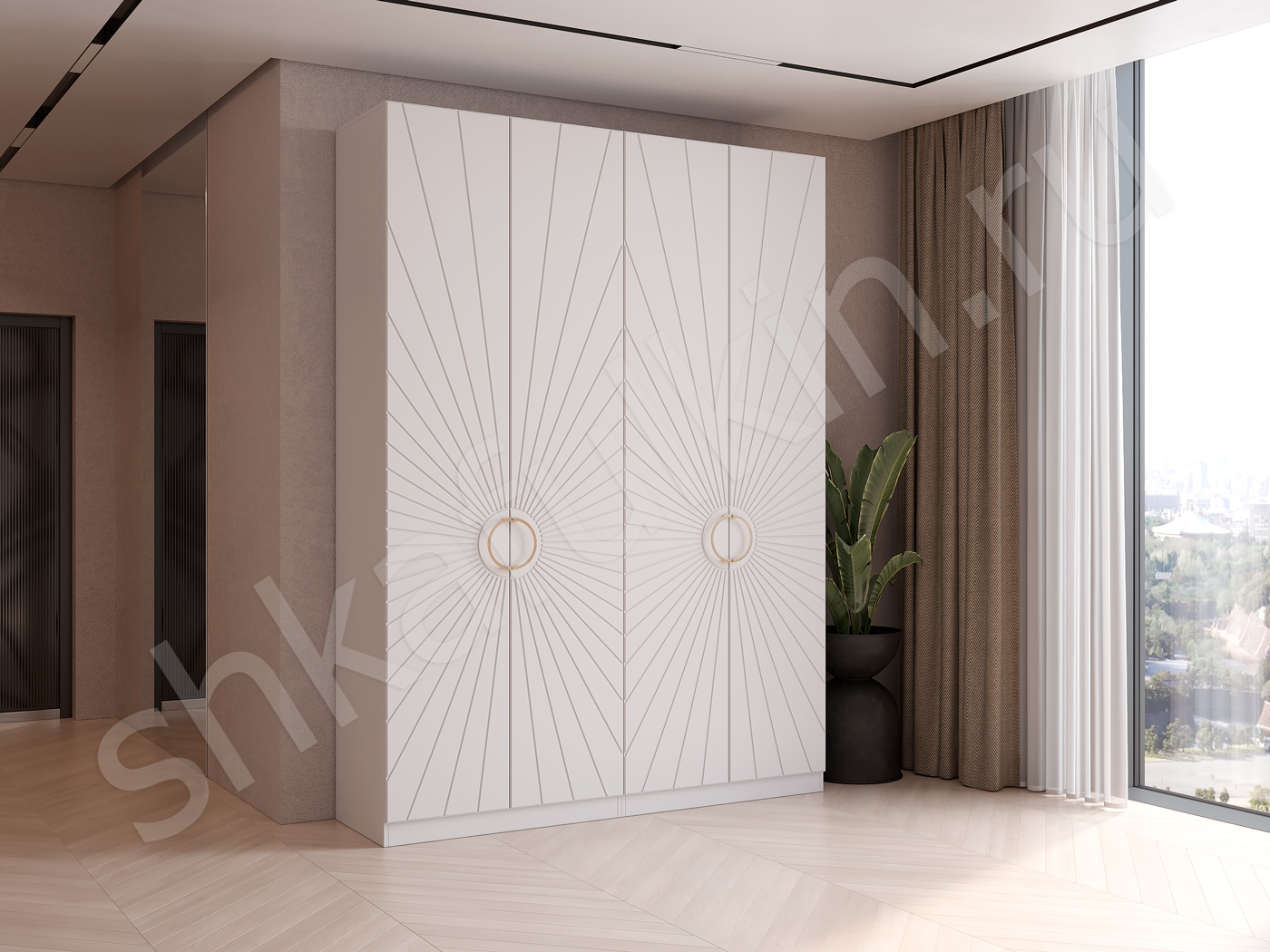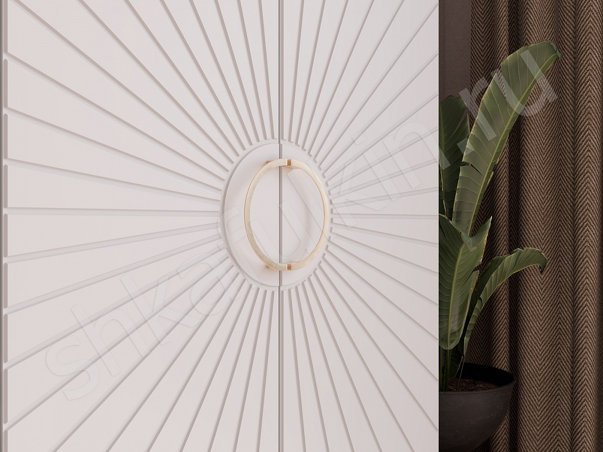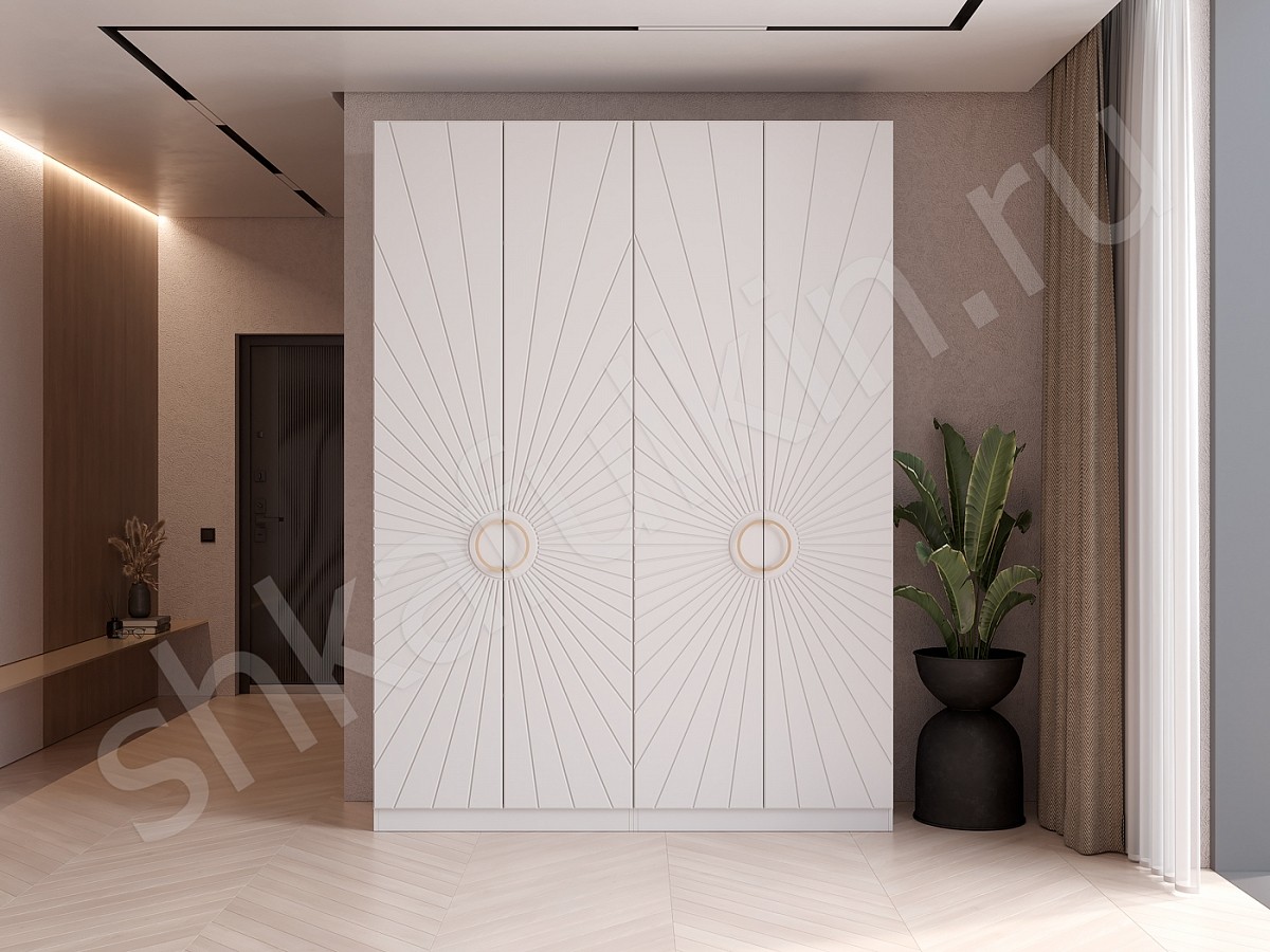 Геометрический рисунок на модели Санима добавляет визуального расширения пространству. Такой шкаф точно не останется незамеченным.