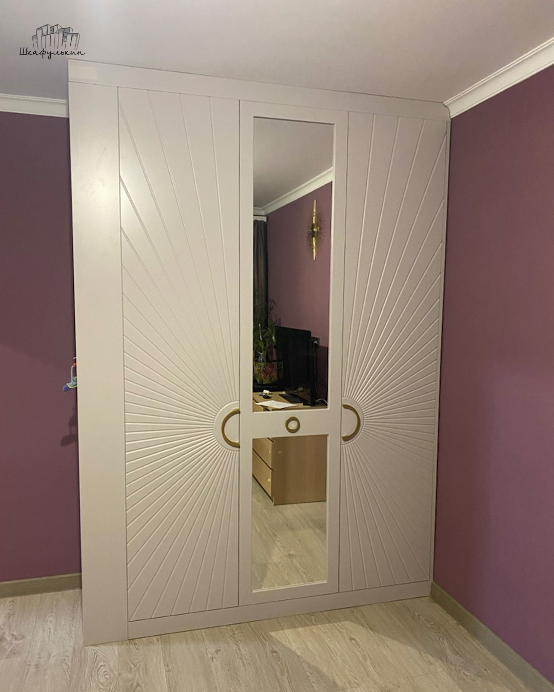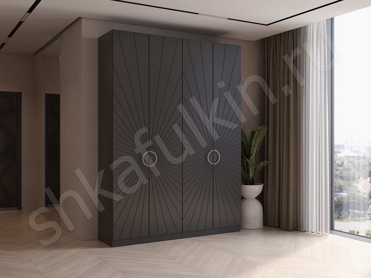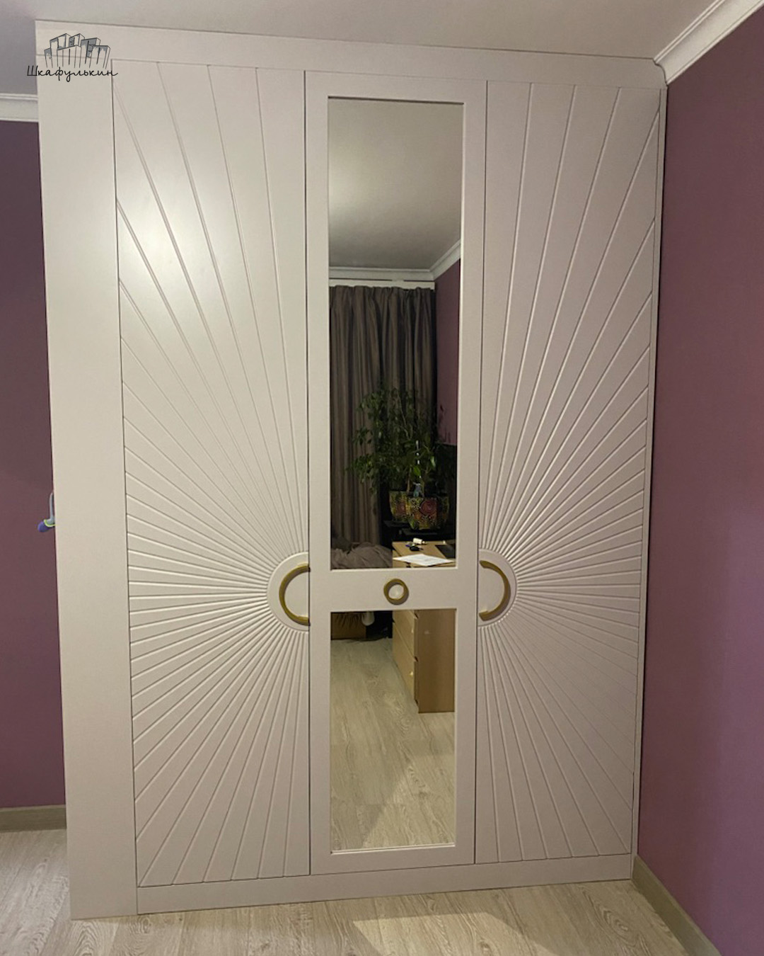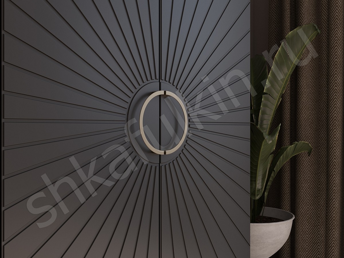 Геометрический рисунок на модели Санима добавляет визуального расширения пространству. Такой шкаф точно не останется незамеченным.