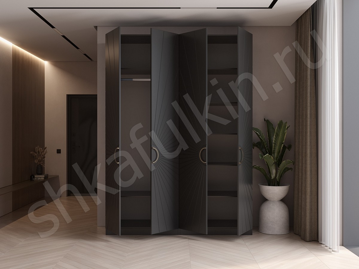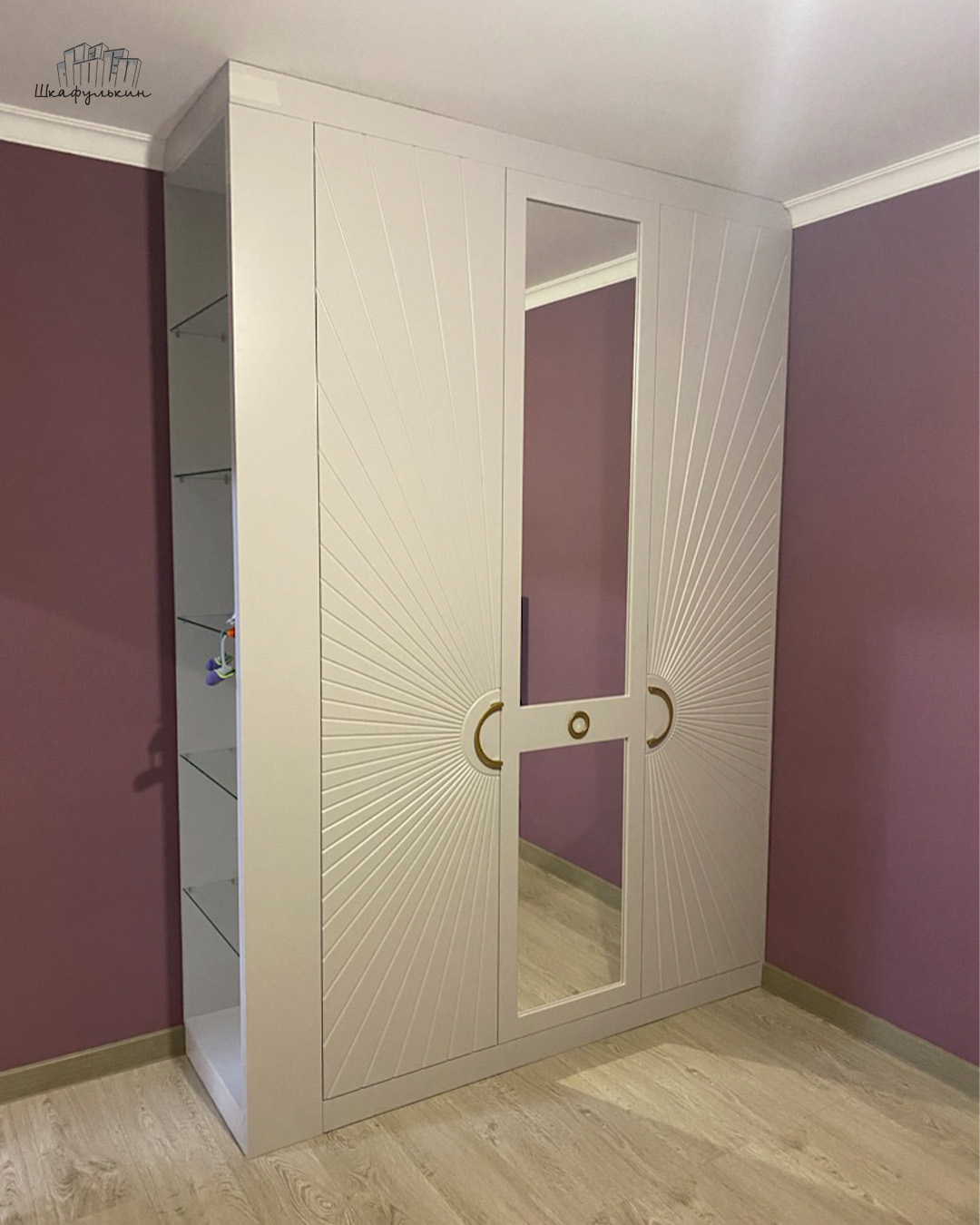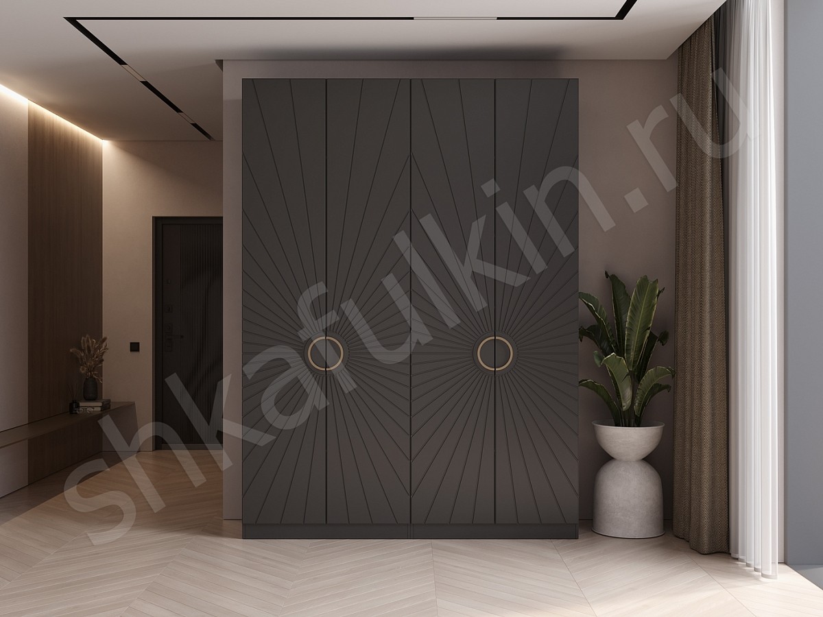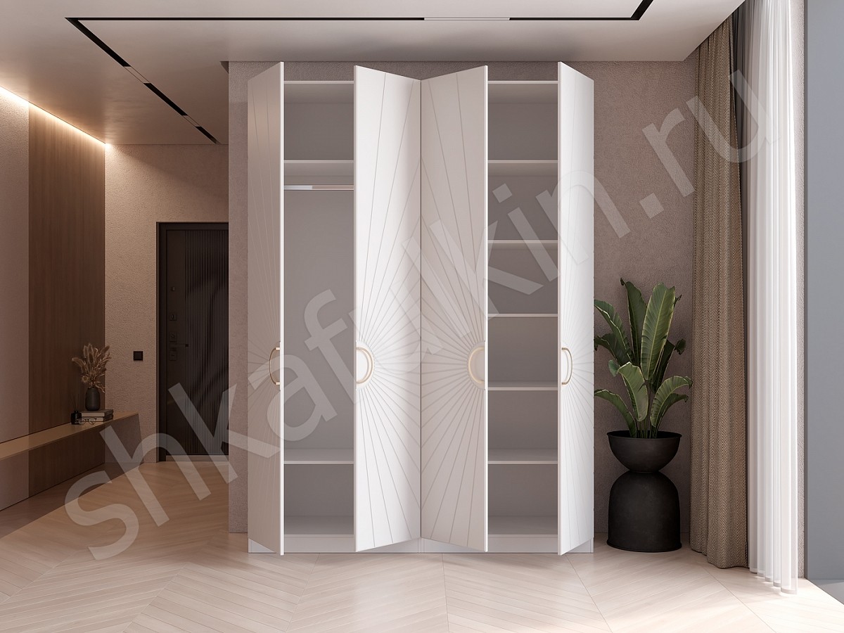 Геометрический рисунок на модели Санима добавляет визуального расширения пространству. Такой шкаф точно не останется незамеченным.