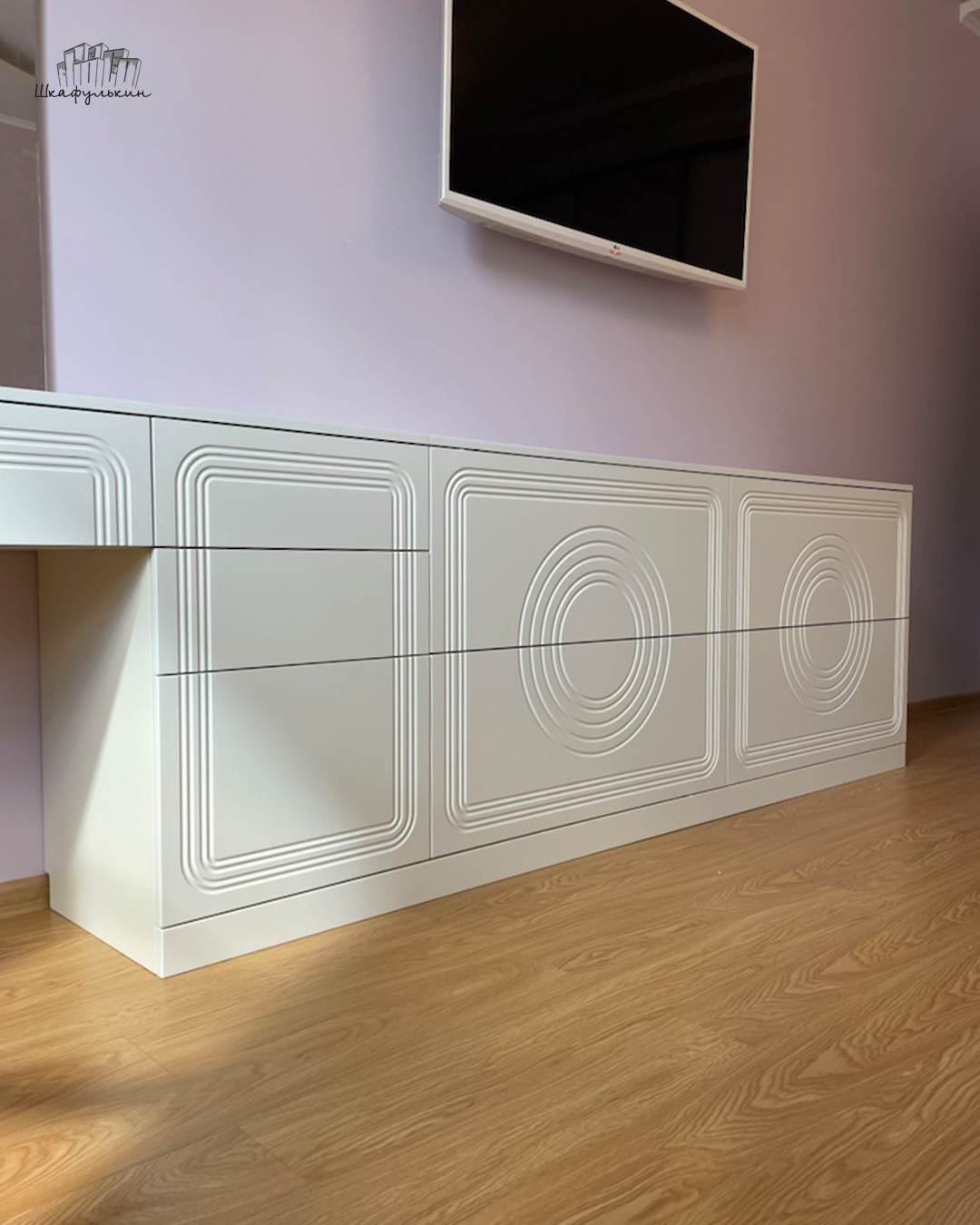 Фасады: МДФ с фрезеровкой 1 категории, крашеный NCS.