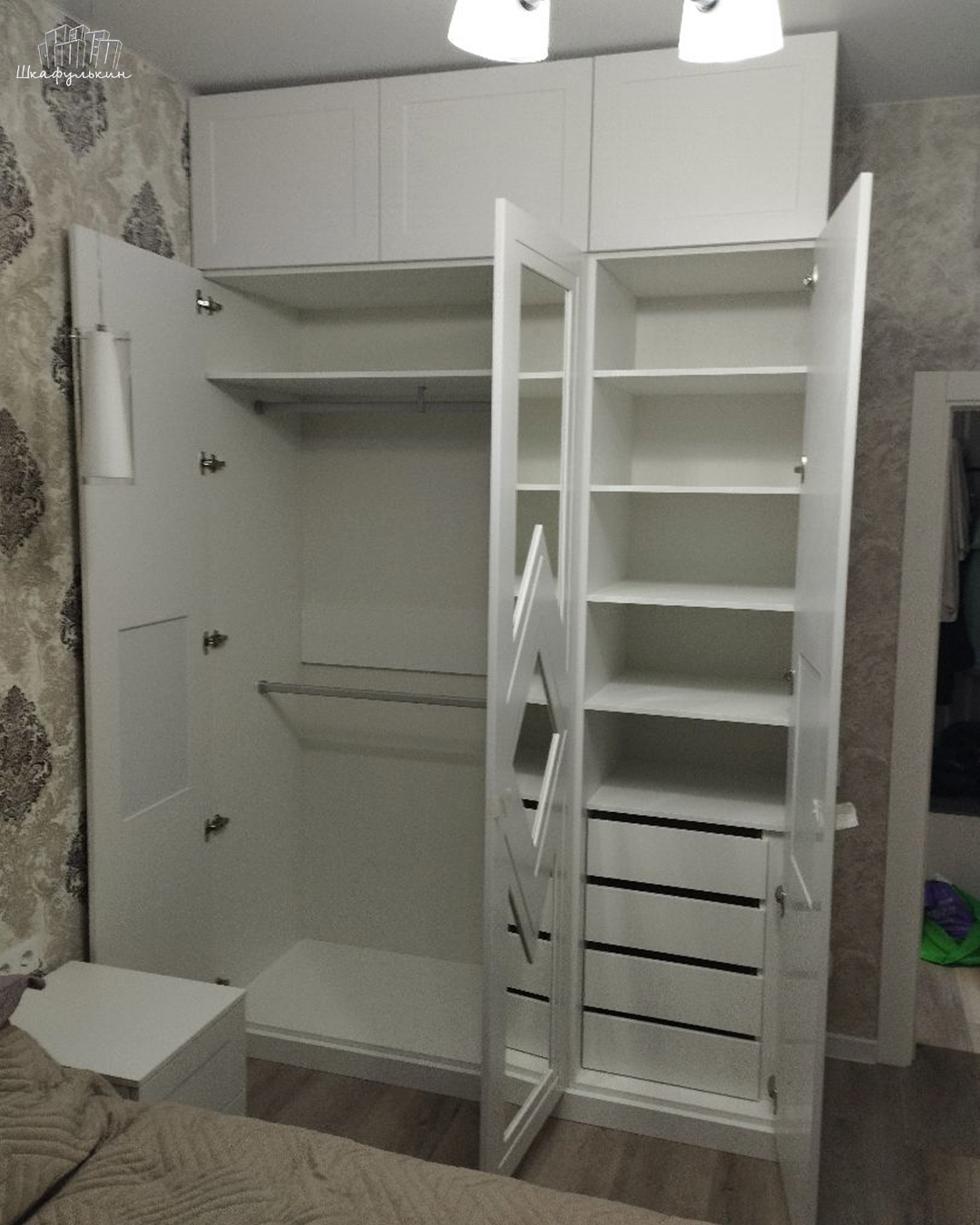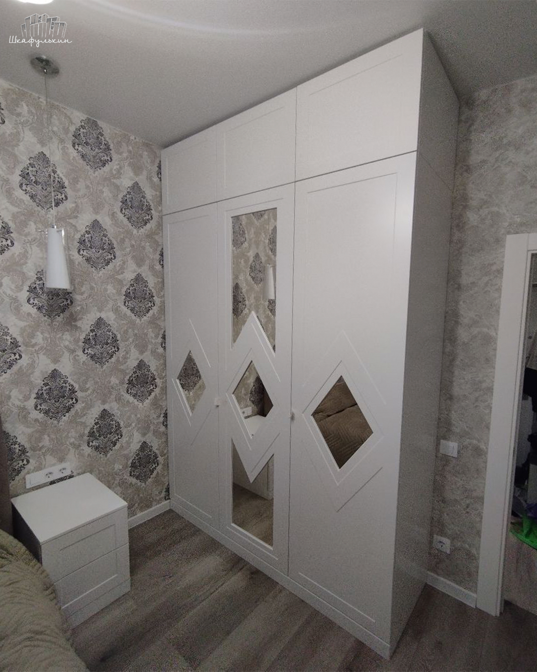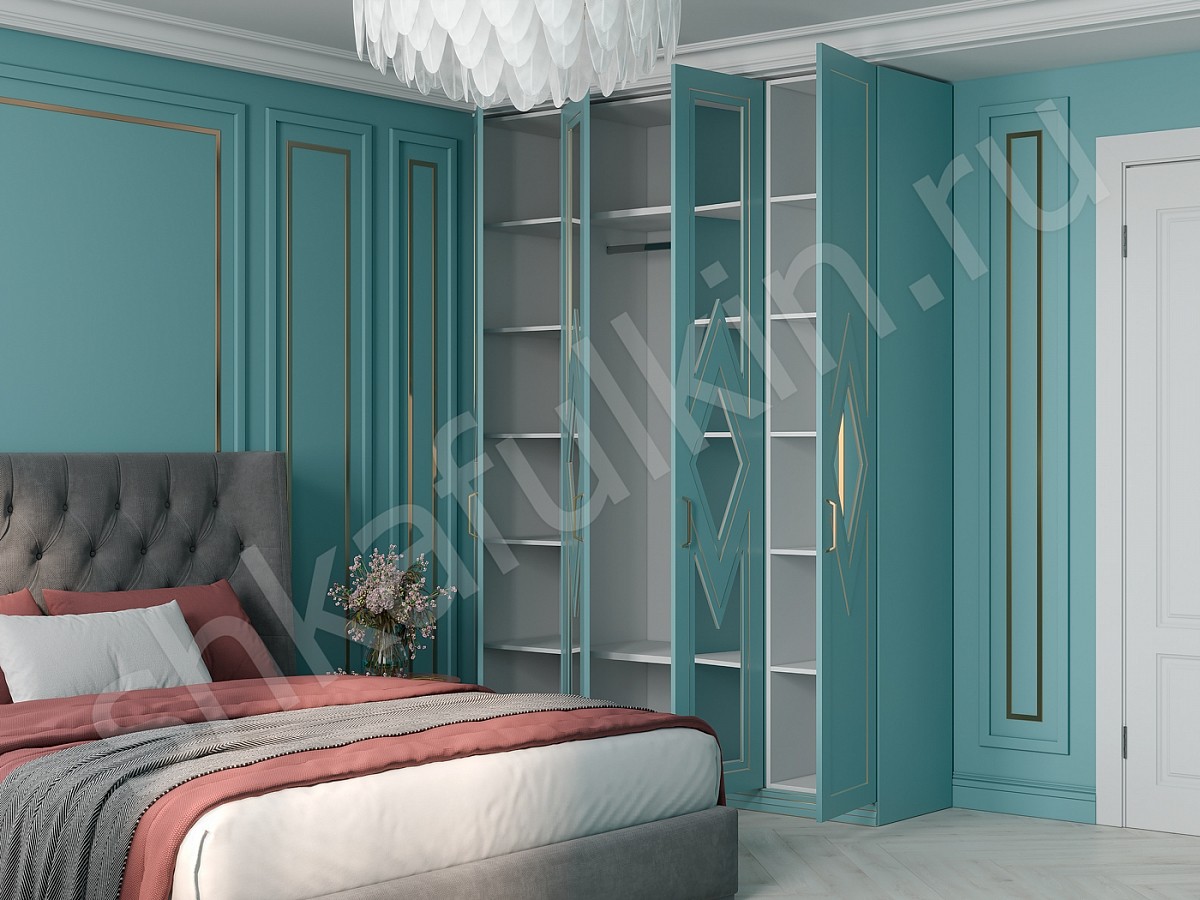 Фасады: МДФ покрашенный по NCS S 1502-Y с гравировкой и зеркалом.
