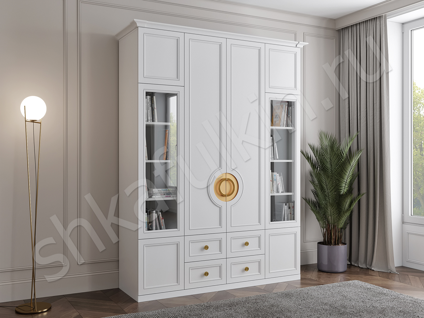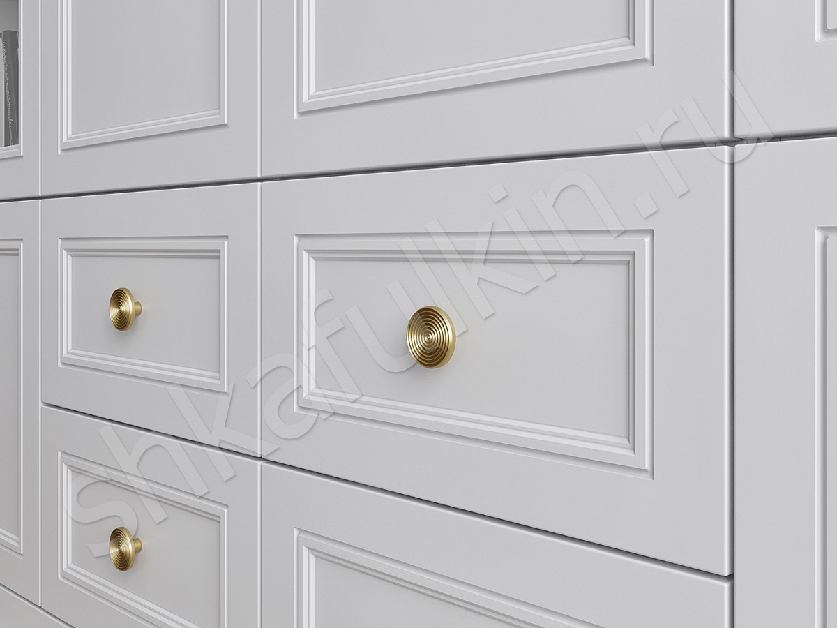 Фасад: МДФ 19мм с фрезеровкой, крашенный по RAL9003 и золотой патиной.
