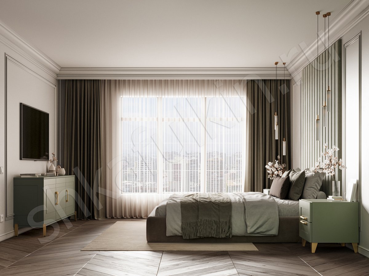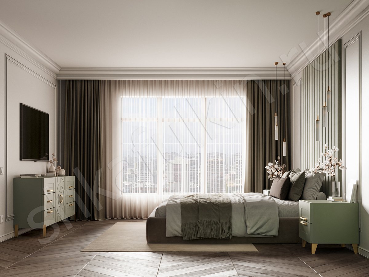 Фасады: МДФ с фрезеровкой, крашенная по NCS.