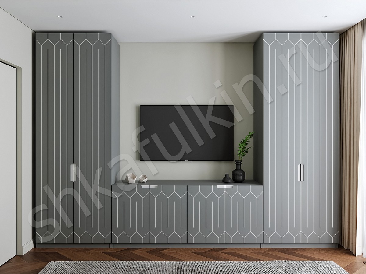 Фасады: МДФ крашенная по RAL 7037 с фрезеровкой, патина.