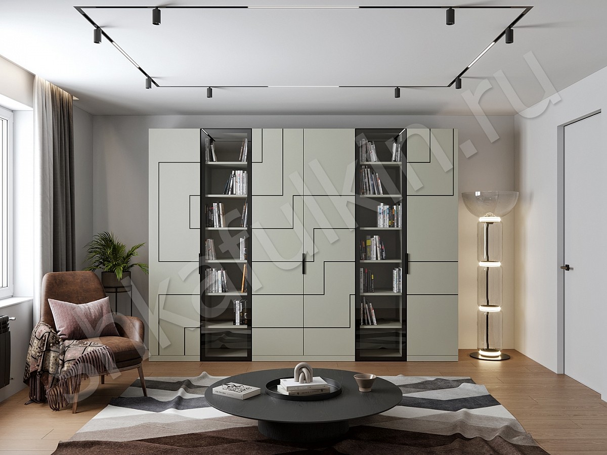 Шкаф Канзас с геометрией на фасадах несомненно станет прекрасным дополнением вашего интерьера.