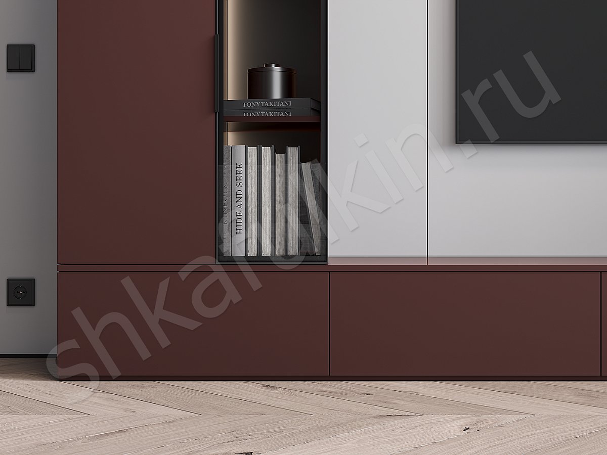 Фасады: МДФ крашенная по NCS/алюминиевый профиль с черным стеклом.