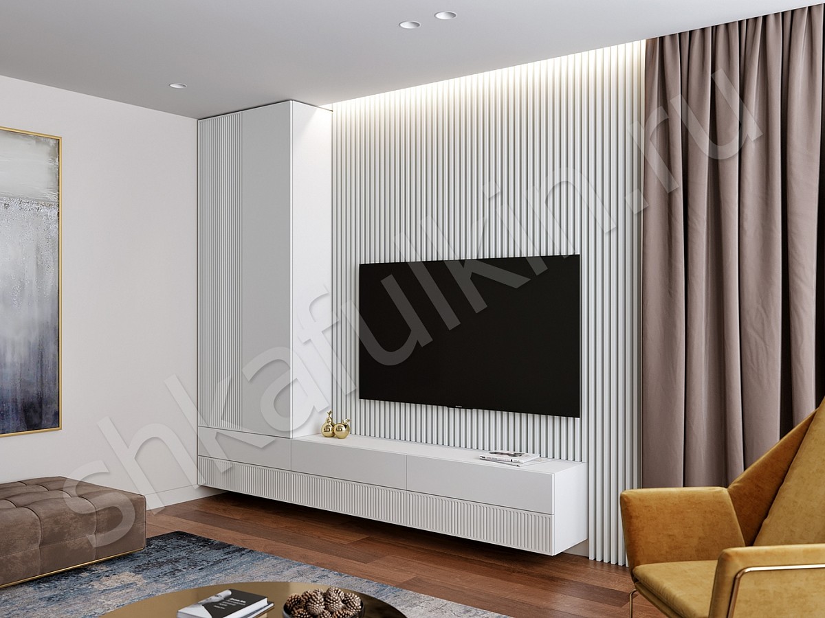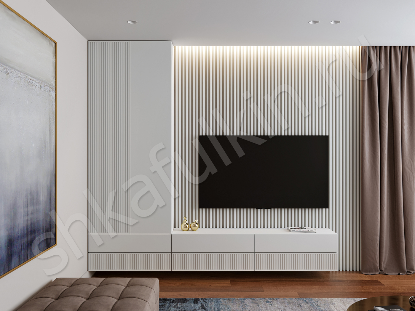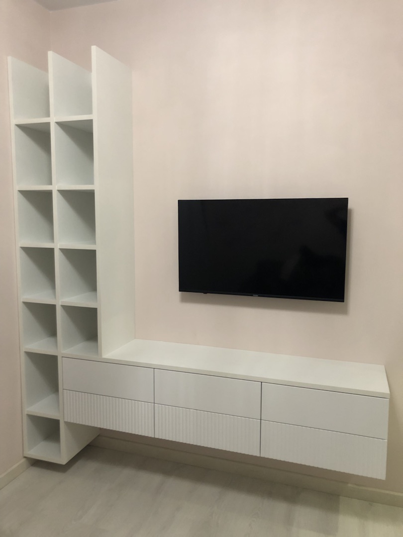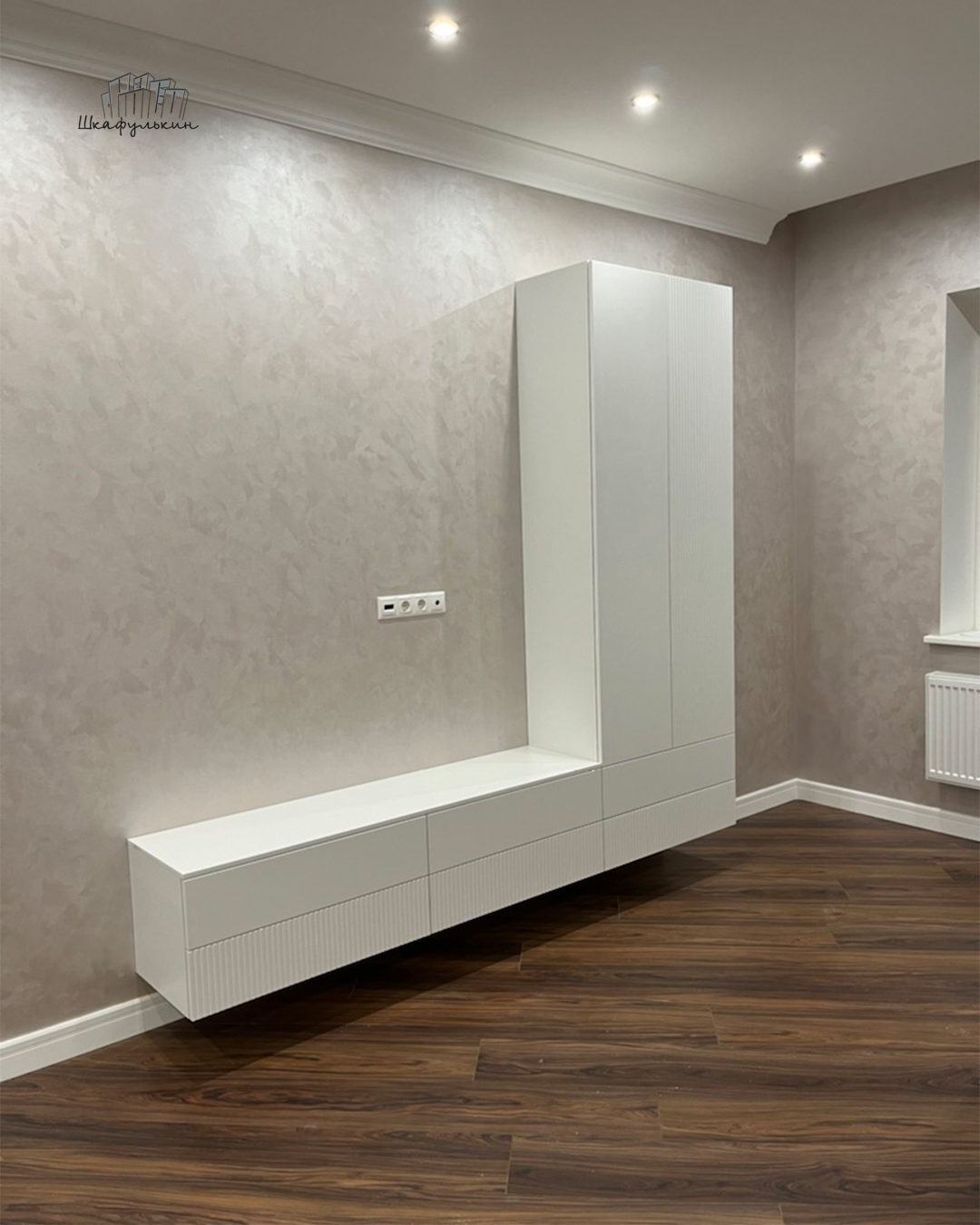 Фасады: МДФ крашенные по RAL белого цвета с фрезеровкой.