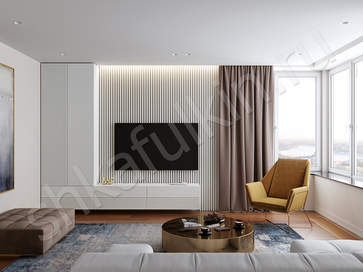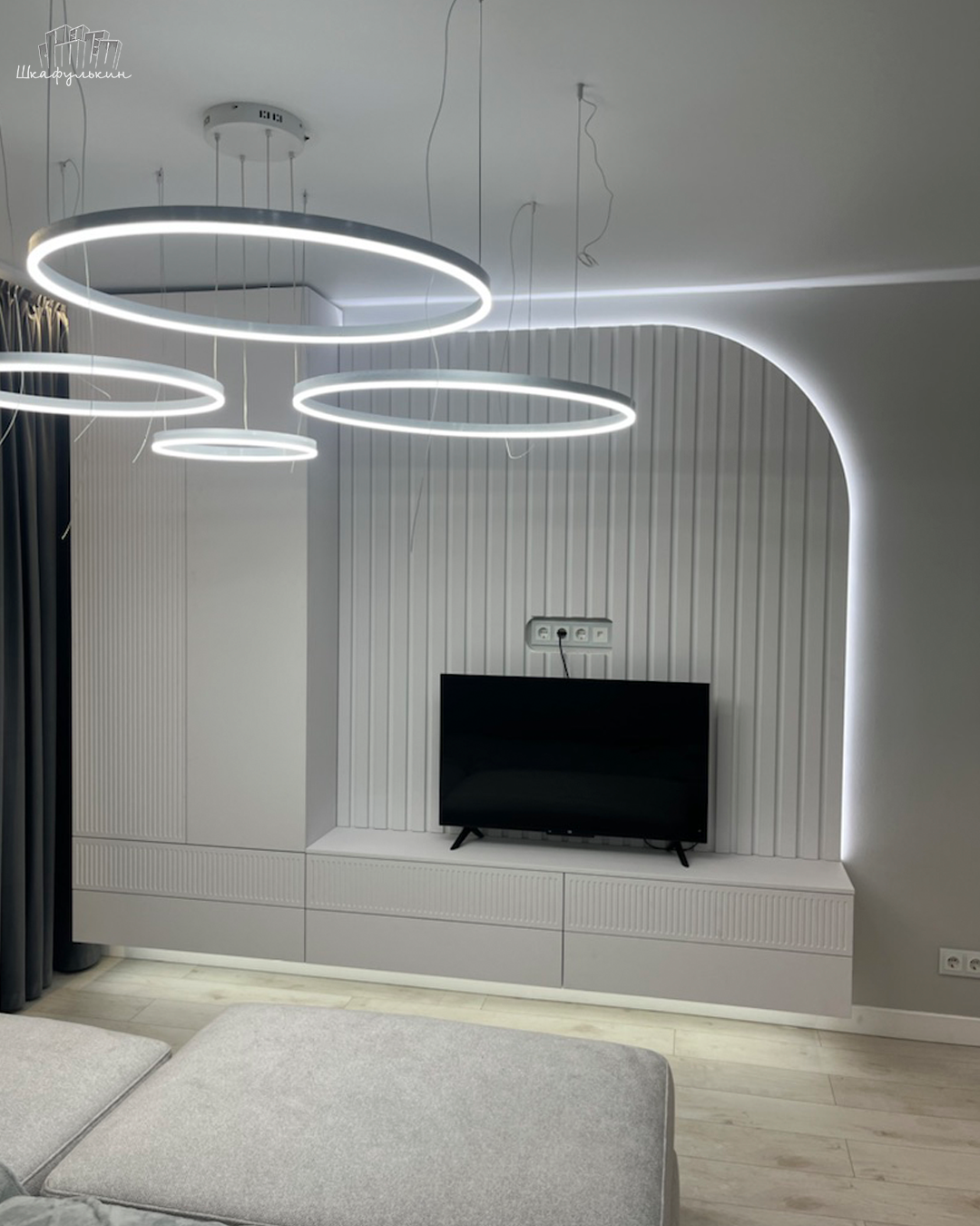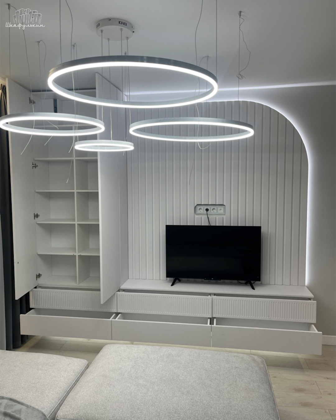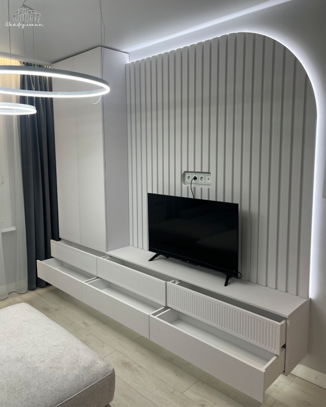 Фасады: МДФ крашенные по RAL белого цвета с фрезеровкой.