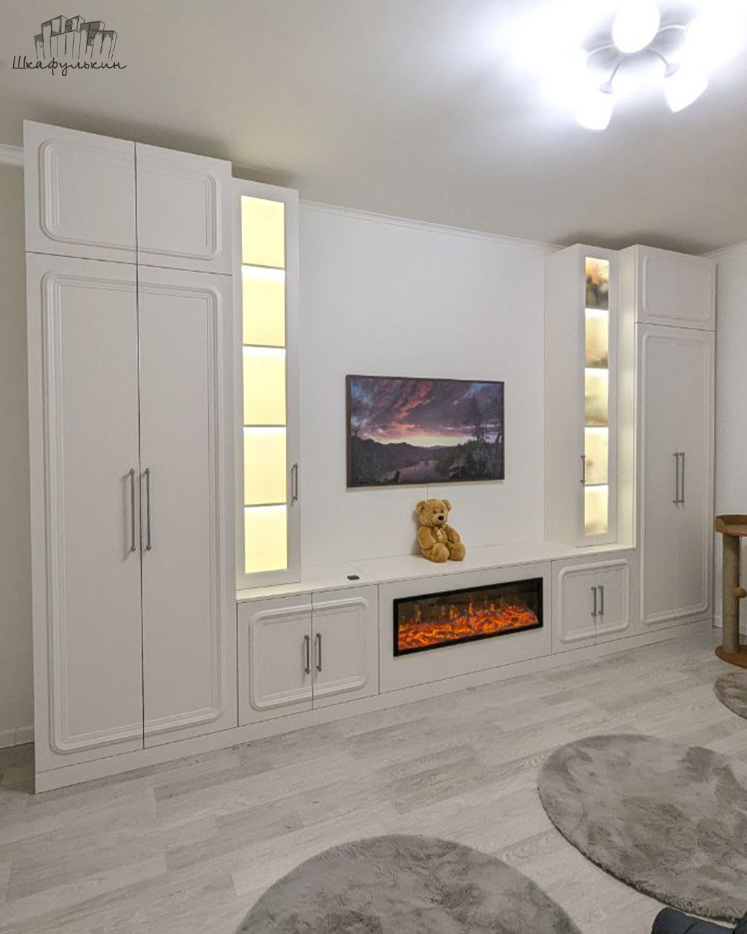 Размер тумбы с камином: 2500х800х400 мм.