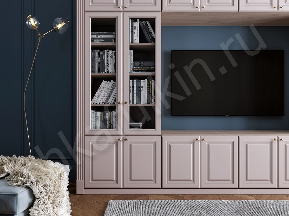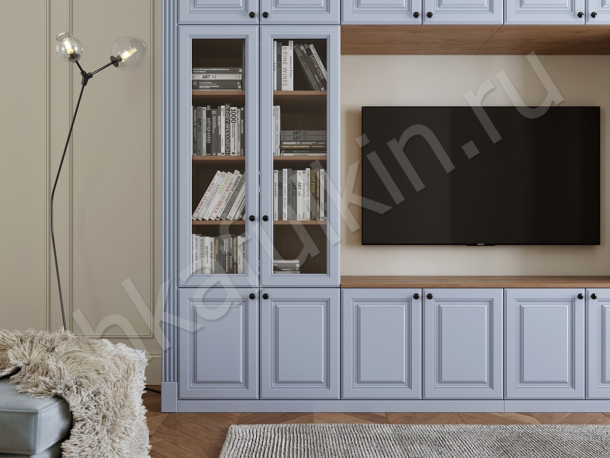Вместительная стенка имеет просторное место под ТВ или проектор и множество полок для хранения книг и других мелких вещей.