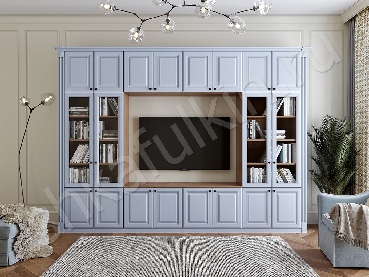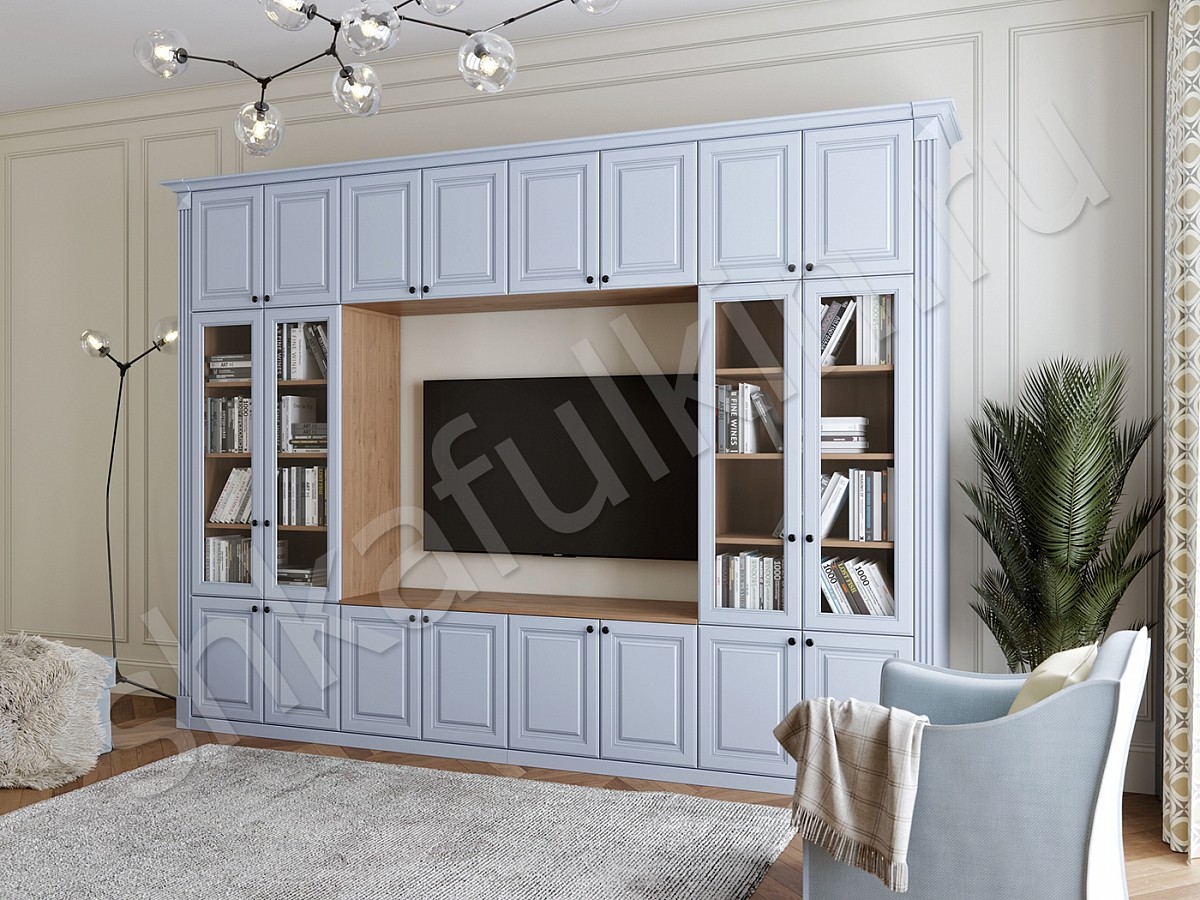 Стильная шкаф-стенка Сенатор в гостиную, выполненная в классическом стиле, станет прекрасным дополнением современного интерьера гостиной комнаты или кабинета руководителя.