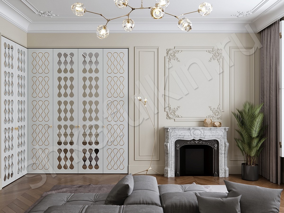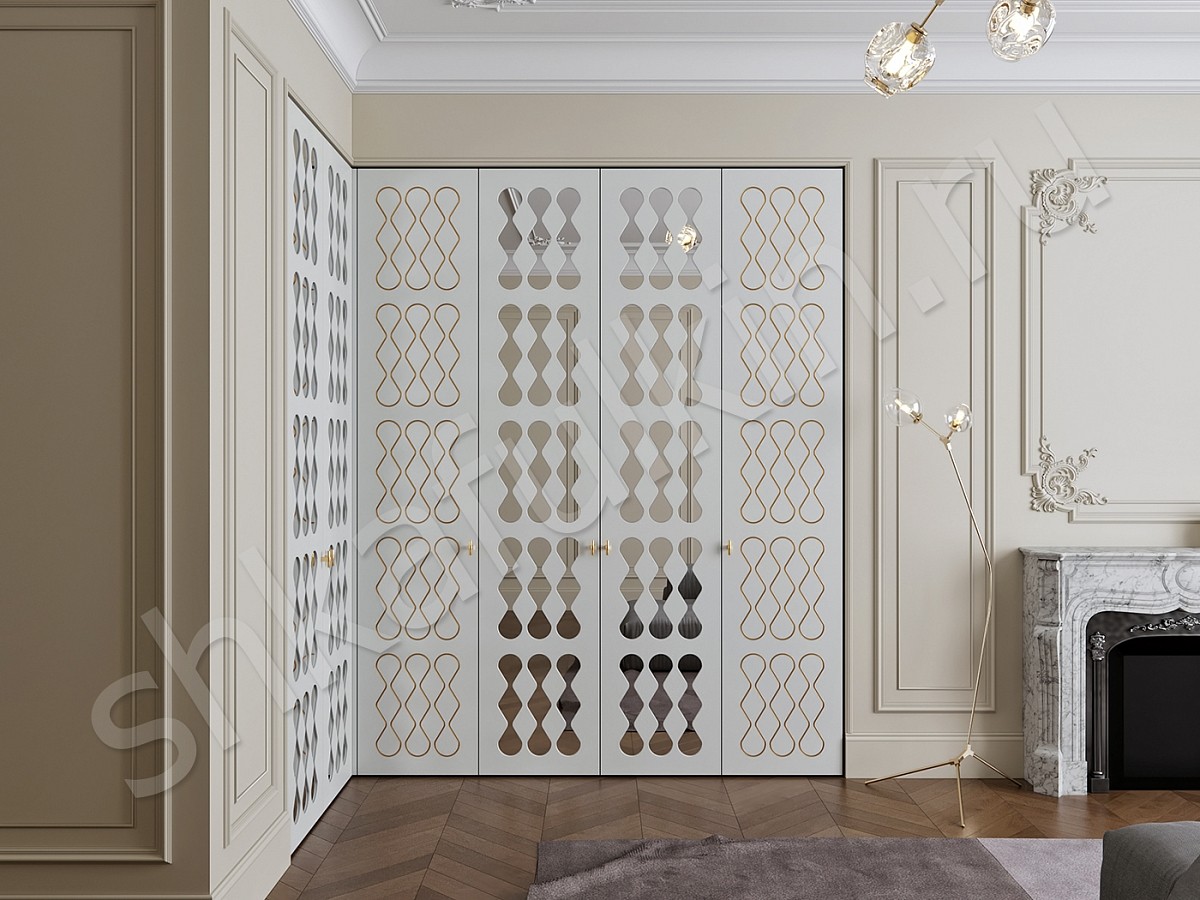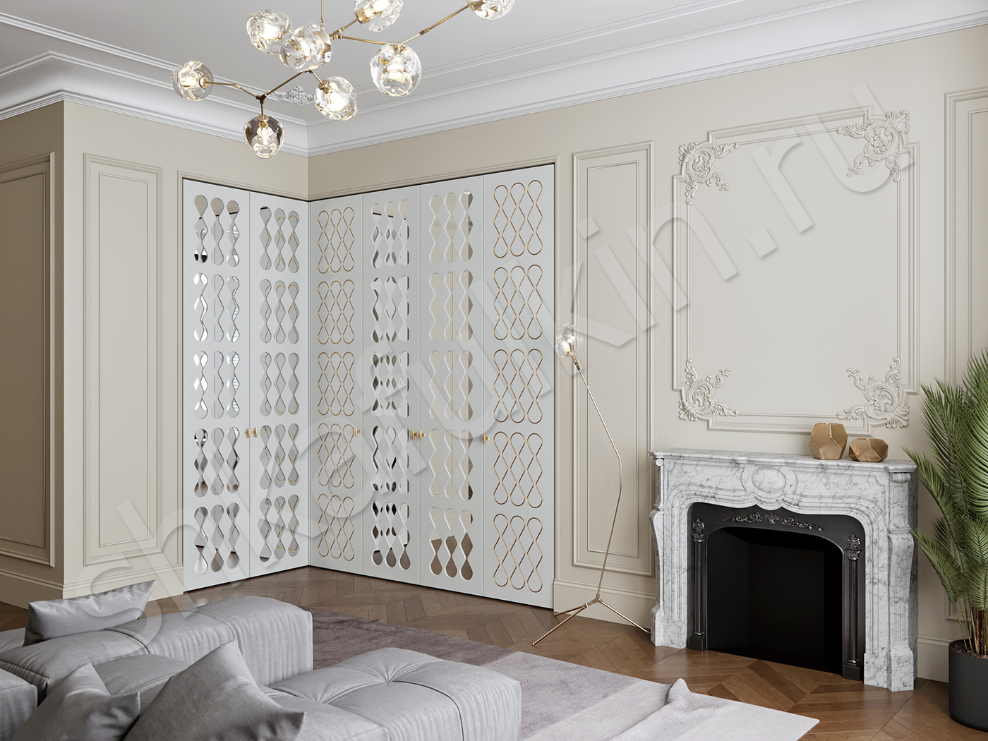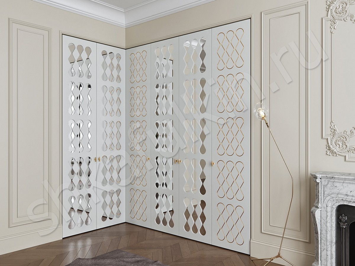Фасад: МДФ с фрезеровкой и зеркалом, крашенный по RAL 9003 и золотой патиной