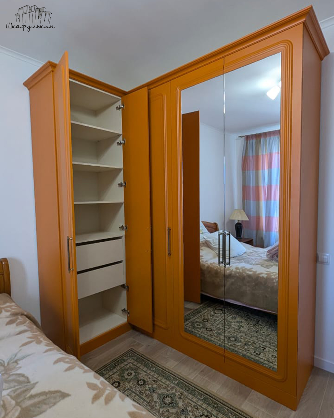 Среди преимуществ углового шкафа стоит отметить достаточно компактные размеры и универсальность. Этот шкаф отлично впишется в любое помещение, не займет много места, еще и рационально задействует пространство в углу комнаты.