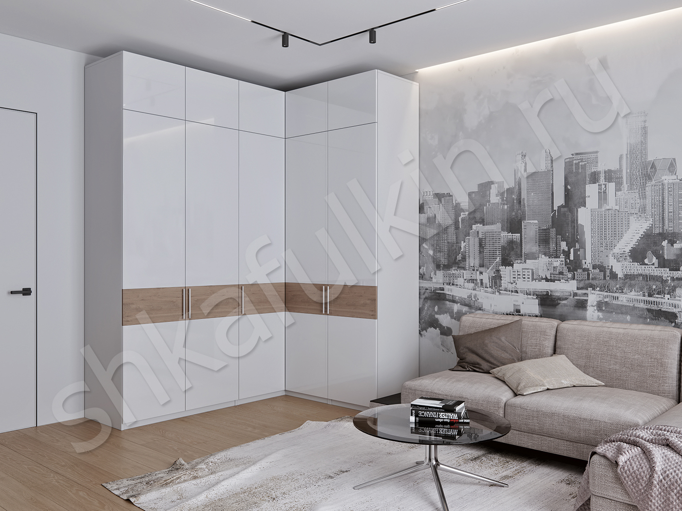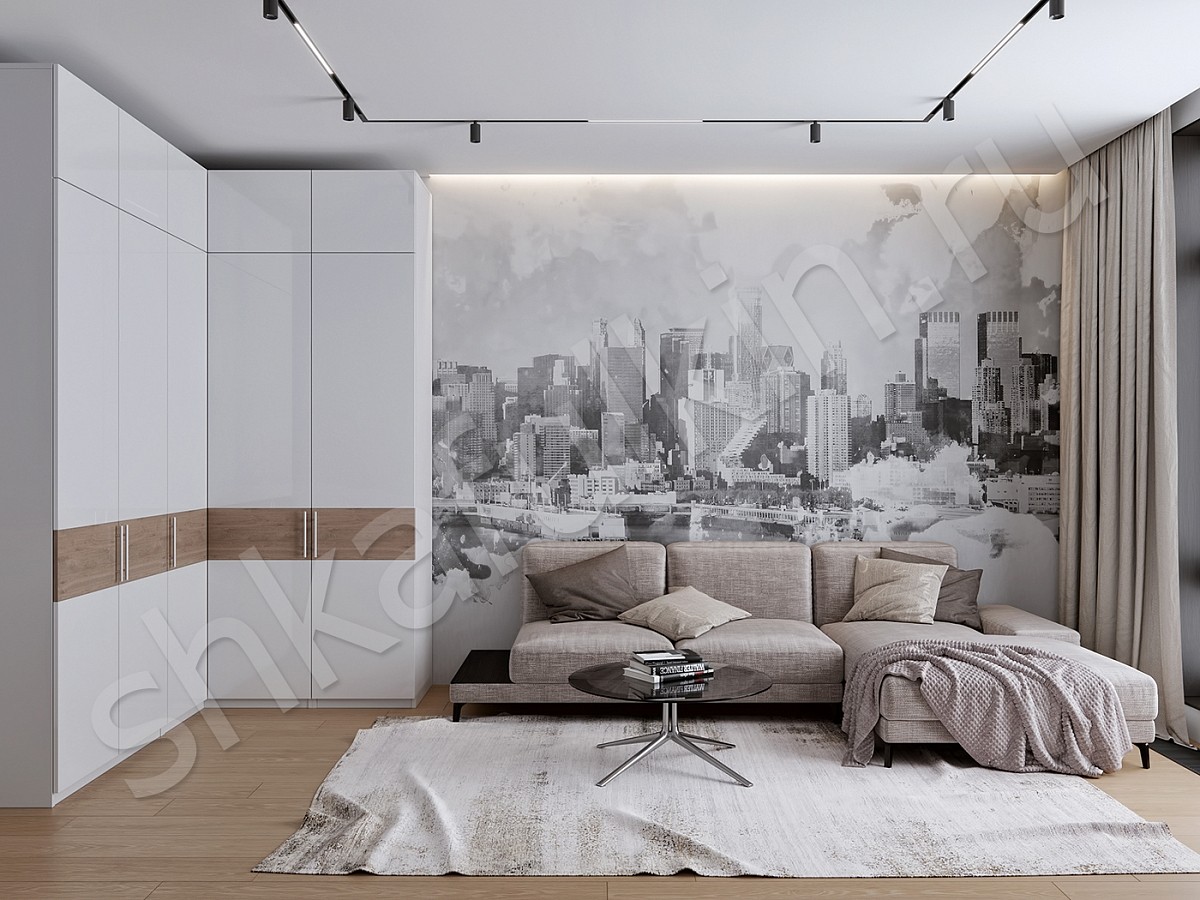 Большой угловой распашной шкаф Эдельвейс. Стильный и вместительный шкаф в гостиную. Благодаря наличию полок, ниш, ящиков и четырех секций со штангами для вешалок, он оказывается невероятно удобным и функциональным дизайнерским решением. Гардеробный Шкаф Эдельвейс с распашными дверями - это вместительный помощник, который украсит помещение и станет его изюминкой.