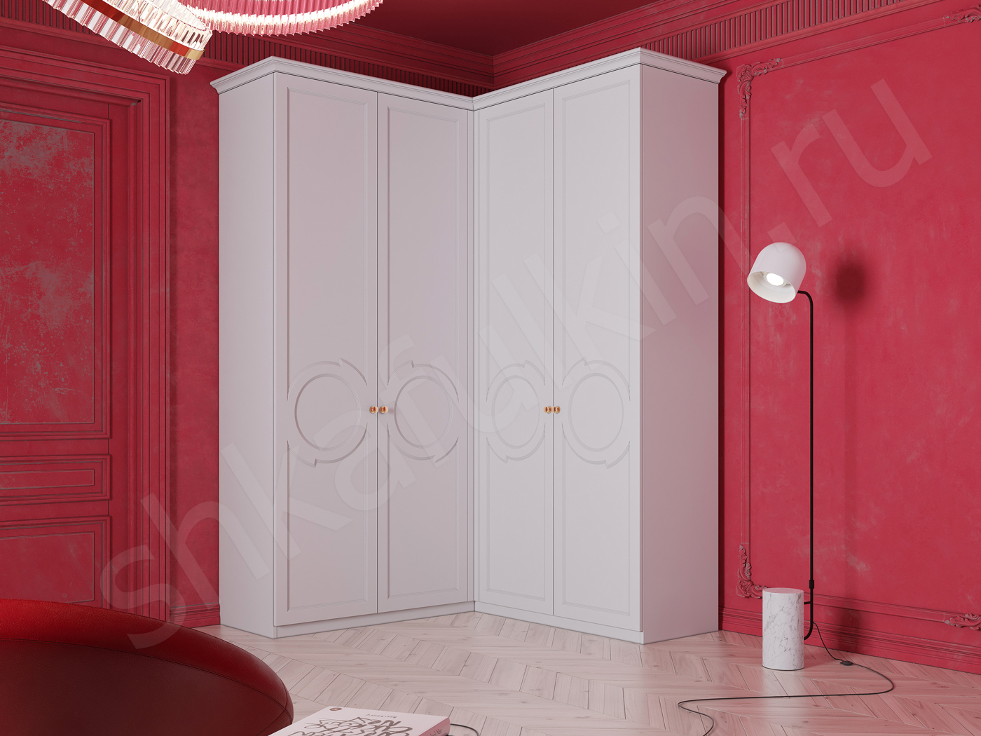 Большой угловой распашной шкаф Эдельвейс. Стильный и вместительный шкаф в гостиную. Благодаря наличию полок, ниш, ящиков и четырех секций со штангами для вешалок, он оказывается невероятно удобным и функциональным дизайнерским решением. Гардеробный Шкаф Эдельвейс с распашными дверями - это вместительный помощник, который украсит помещение и станет его изюминкой.