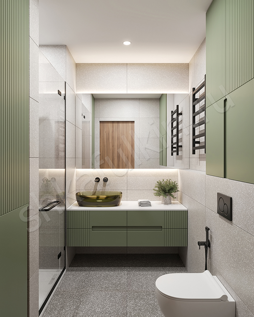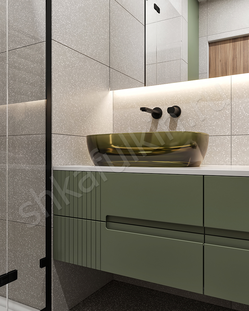 Фасады: МДФ с фрезеровкой крашенный по NCS.