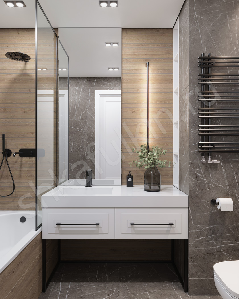 Фасады: МДФ с фрезеровкой, крашенная по NCS.