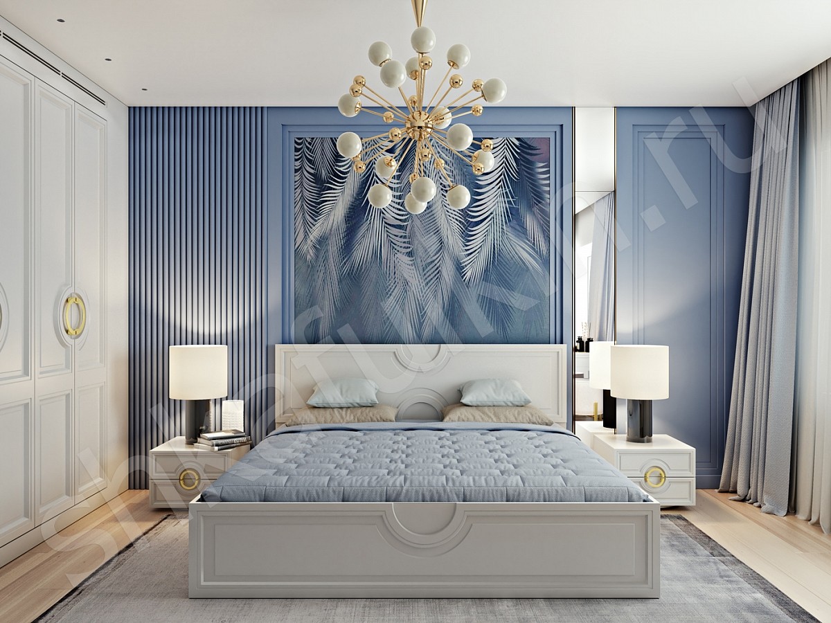 На фоне белого, который символизирует собой чистоту, синий умиротворяет, вызывает ощущение спокойствия, что идеально подходит для помещений, в которых мы хотим отдохнуть или провести время с друзьями.