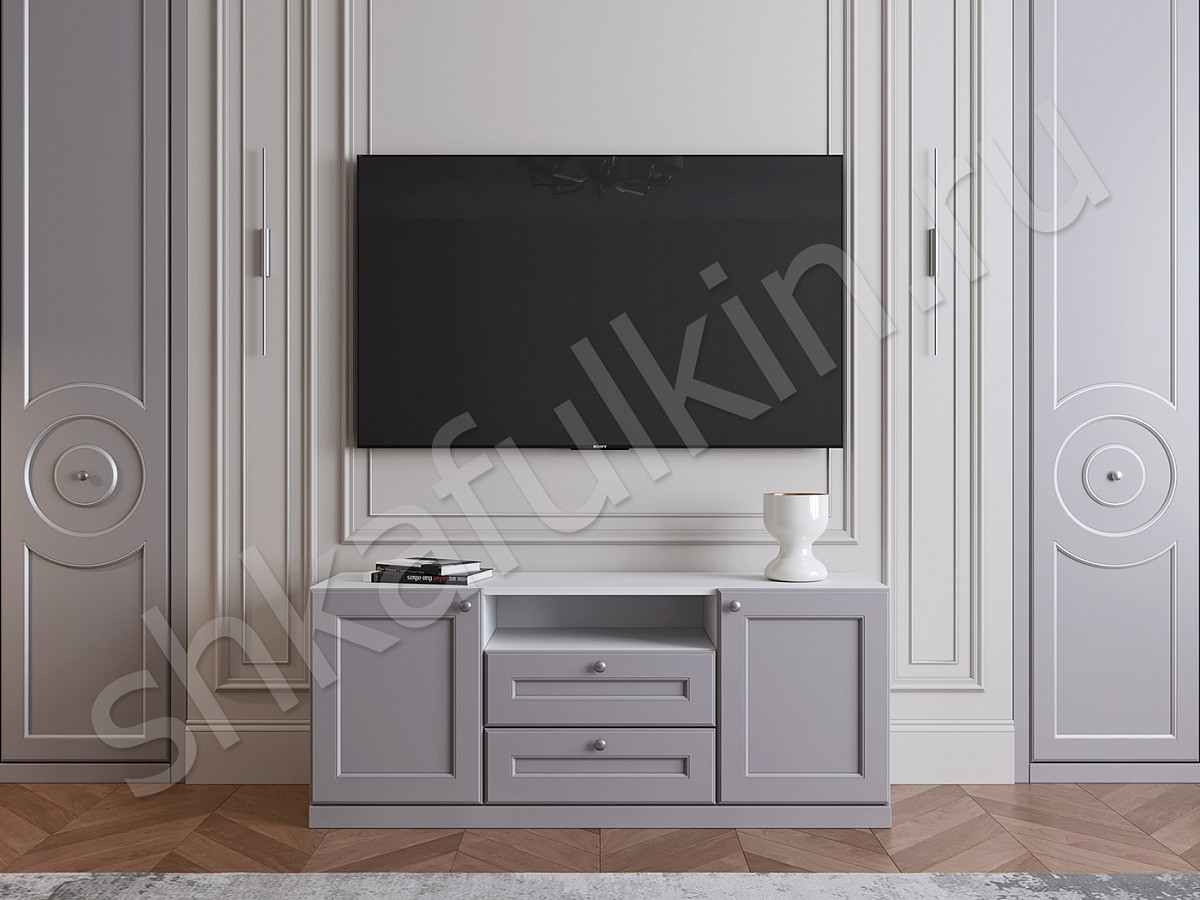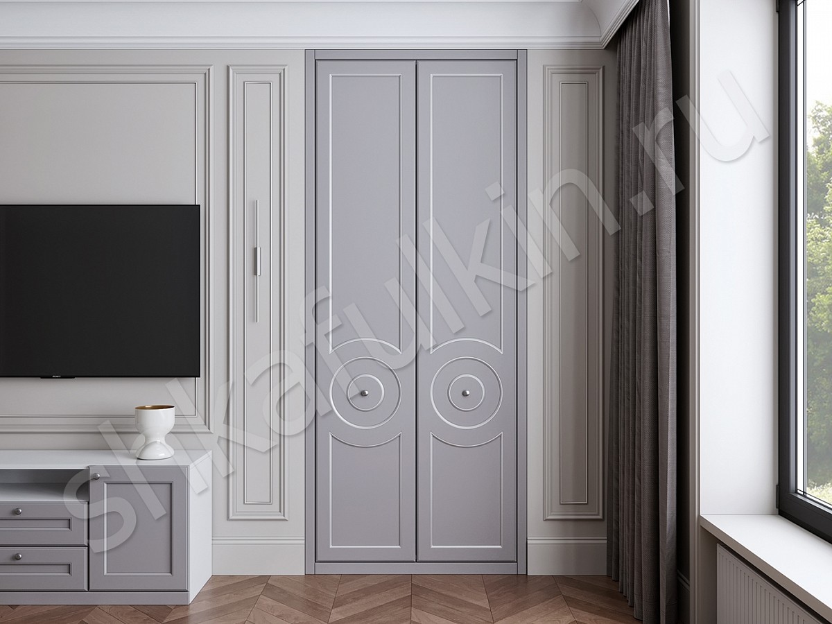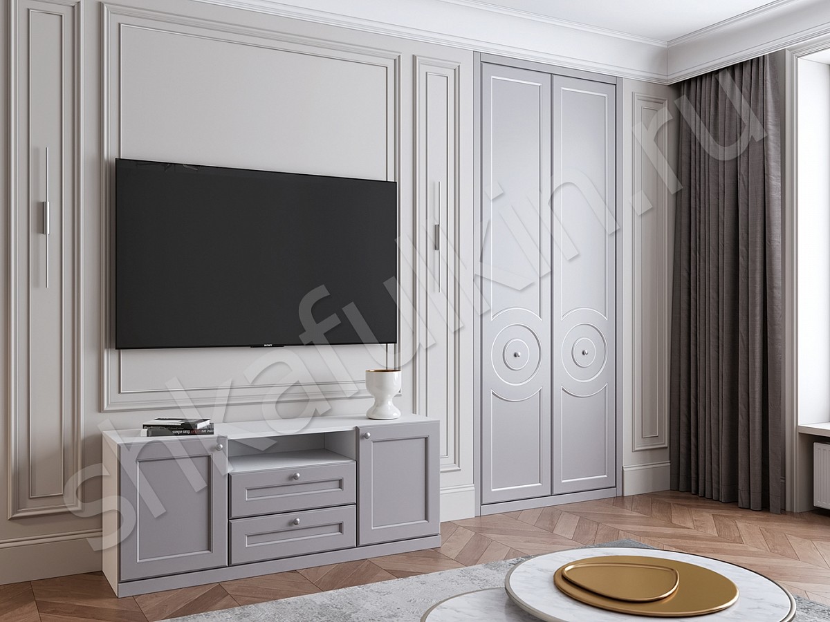 Фасад: МДФ с фрезеровкой, крашенный по RAL 7036 и серебристой патиной.