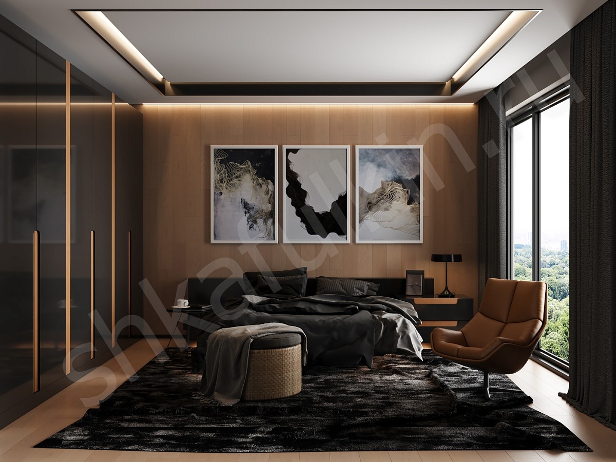 Фасады: МДФ покрашенный по NCS / шпон дуб натуральный.