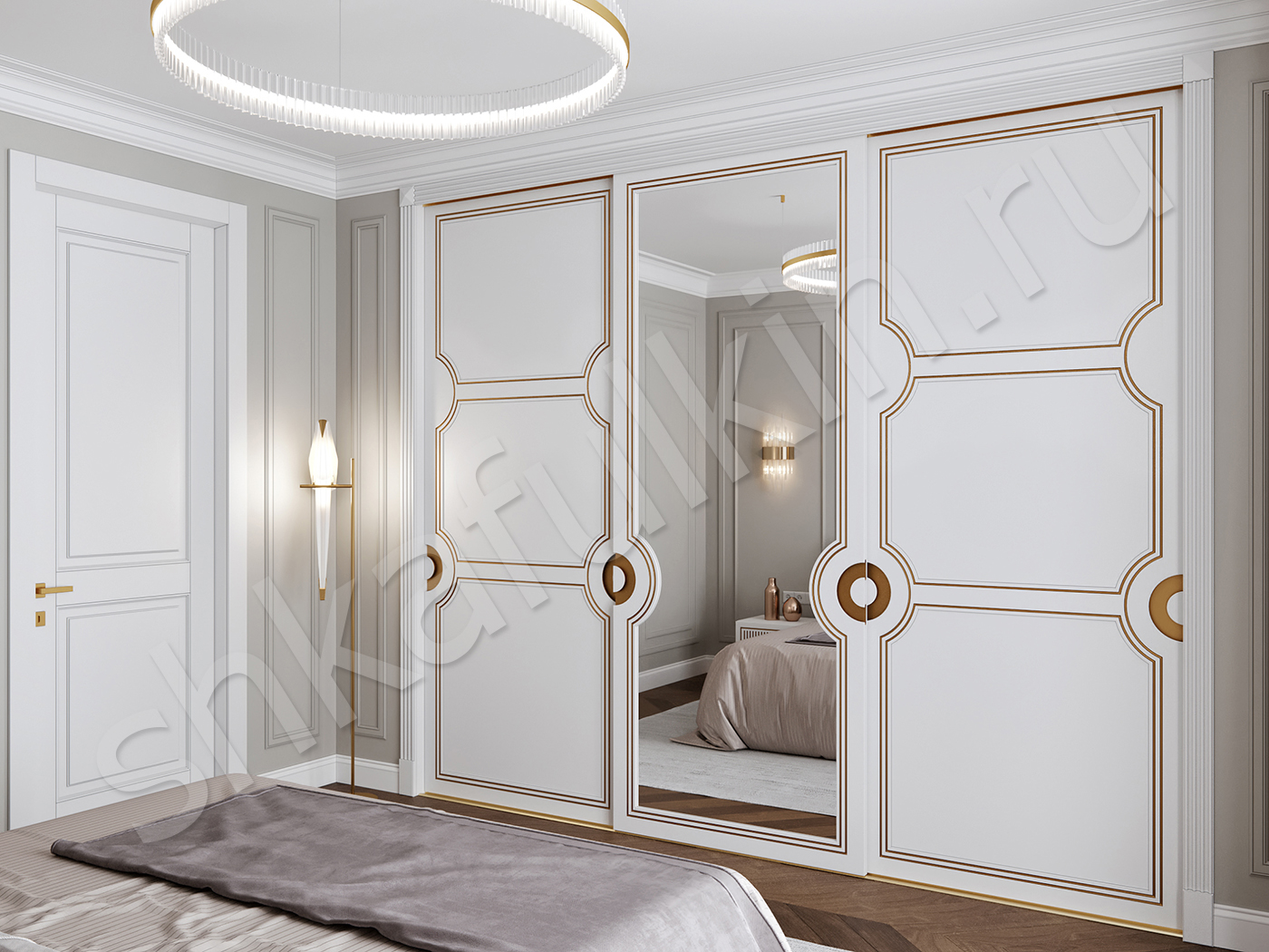 Шкафы-купе имеют удобную систему раздвижных дверей. Конструкция занимает минимум места в спальне, а размер, материал и расположение полок внутри вы корректируете сами.