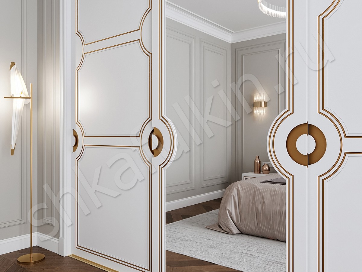 Фасады: МДФ 25 мм с фрезеровкой, крашенная по RAL белого цвета, патина.