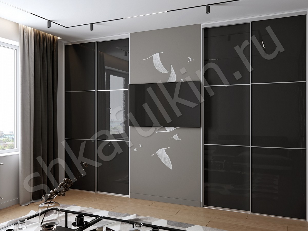 Двери: Стекло Лакобель черный с пленкой безопасности, делители, тихоходные ролики, шлегель.