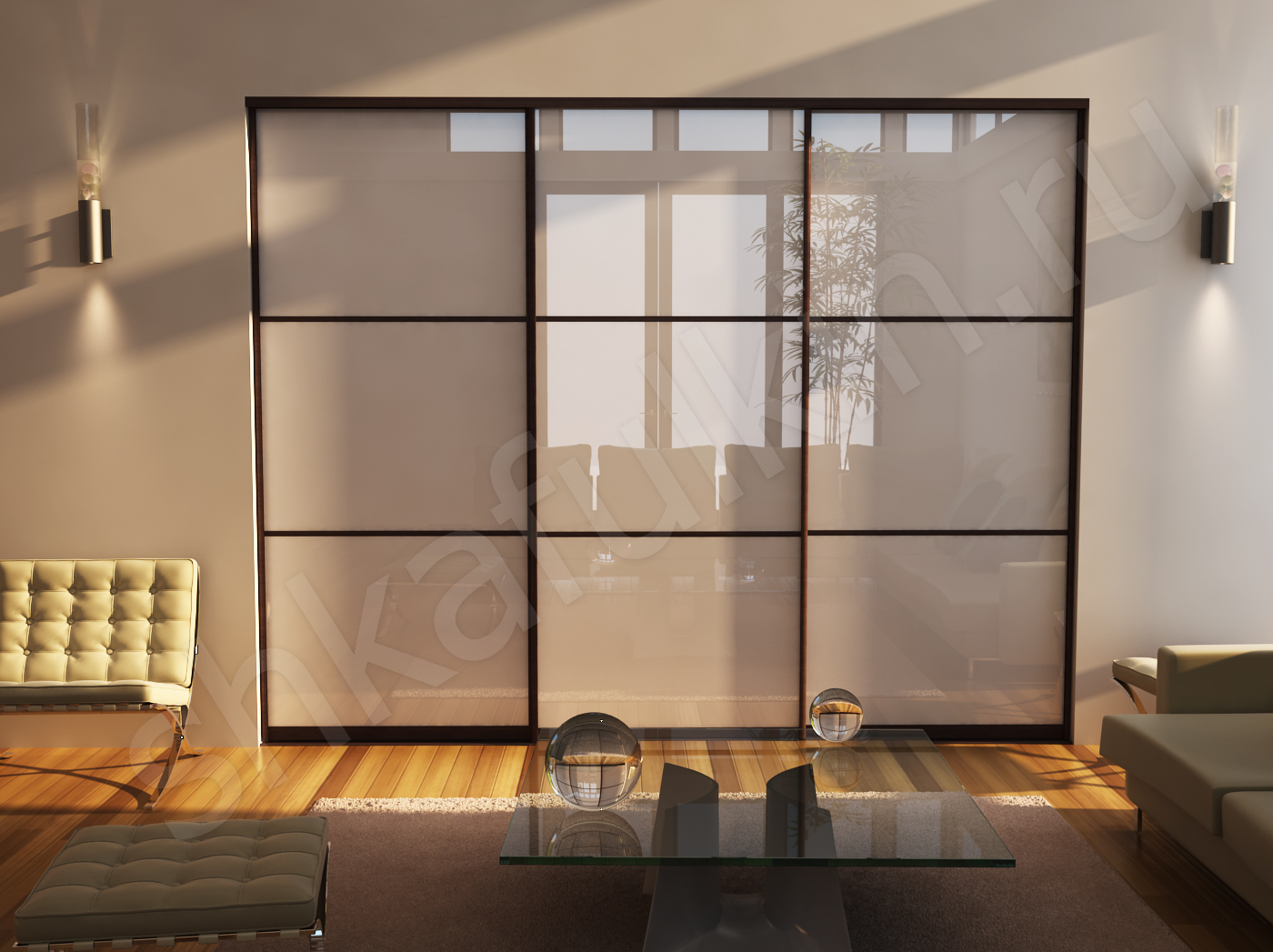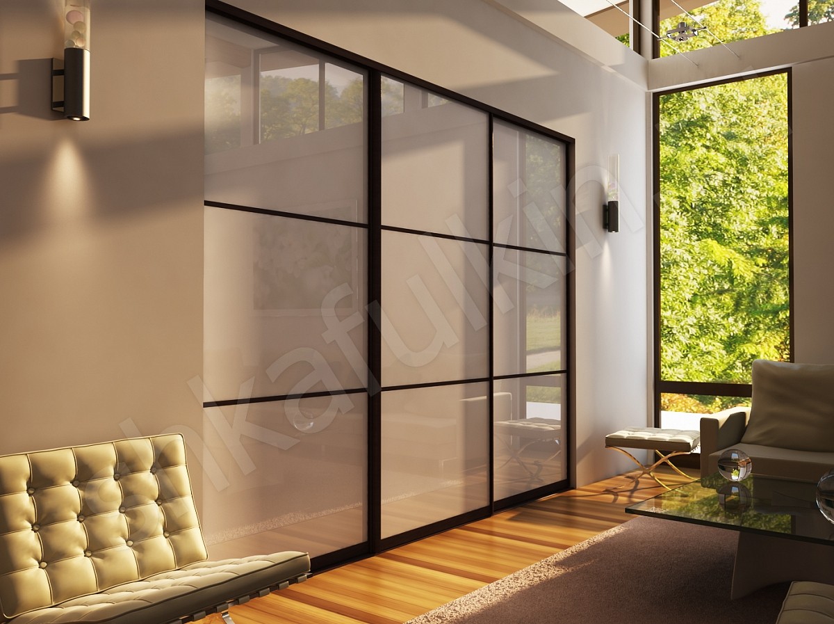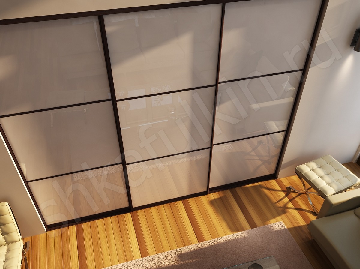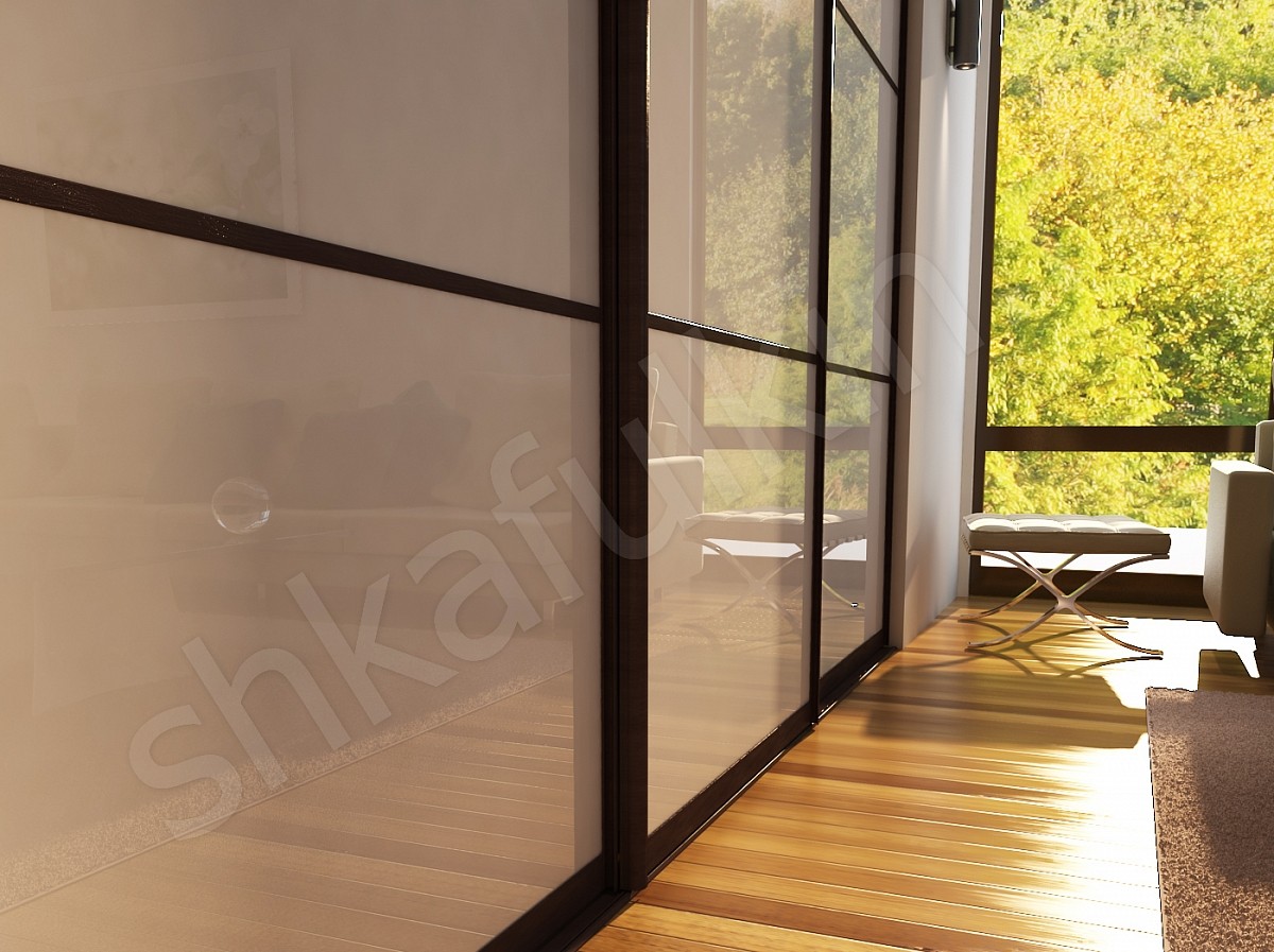 Двери: стекло Лакобель с делителями, бесшумные ролики, доводчики, щетки.
