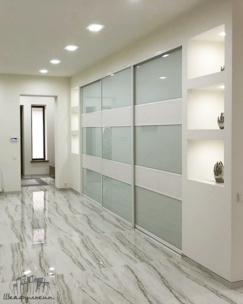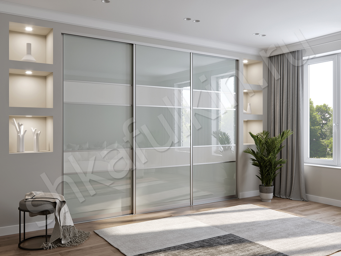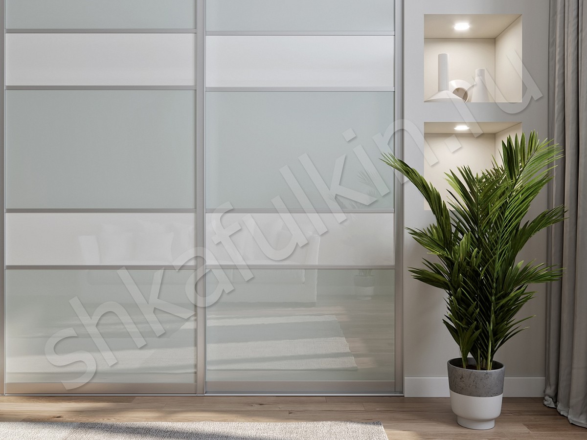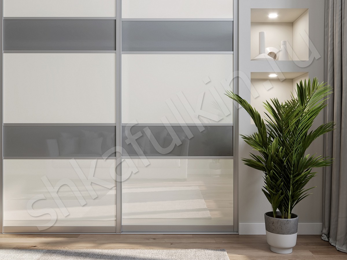 Двери: Стекло Lacobel с пленкой безопасности, делители, тихоходные ролики, шлегель.