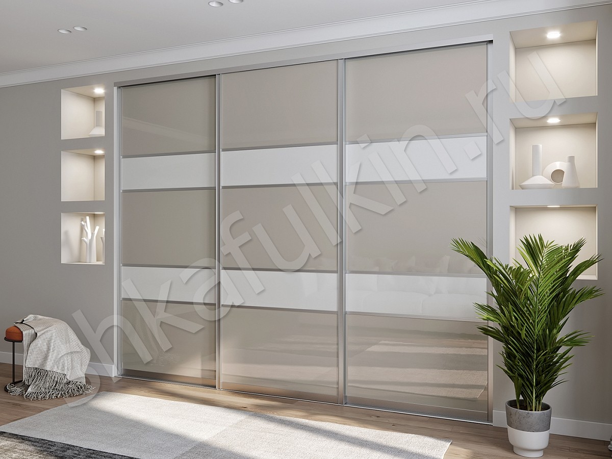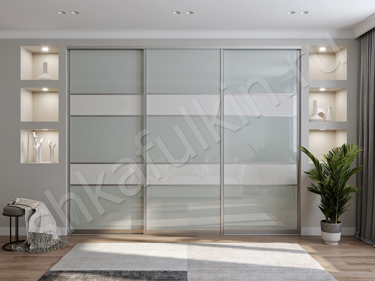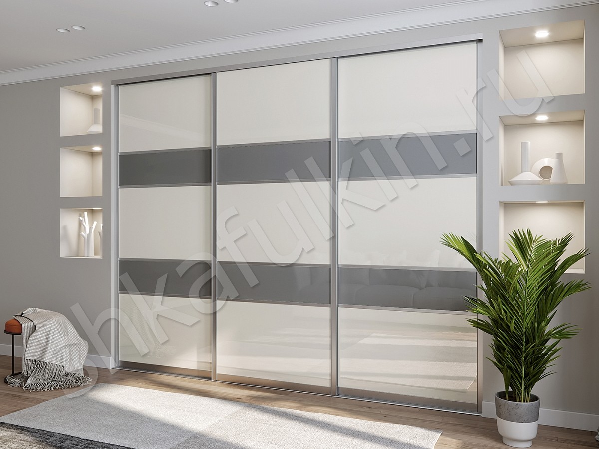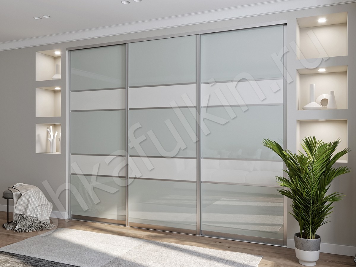 Двери: Стекло Lacobel с пленкой безопасности, делители, тихоходные ролики, шлегель.