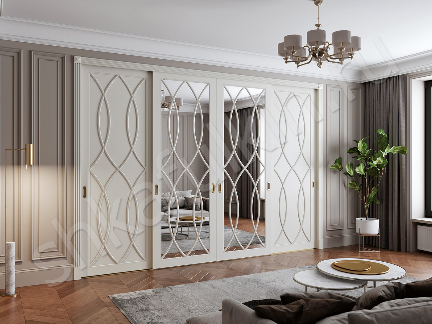 Фасад из МДФ с фрезеровкой и зеркалом, крашенный по RAL 9001.