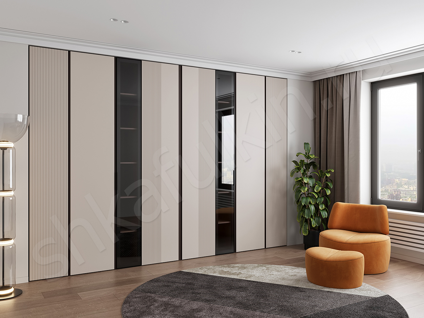 Фасады: МДФ с фрезеровкой, крашенная по NCS.