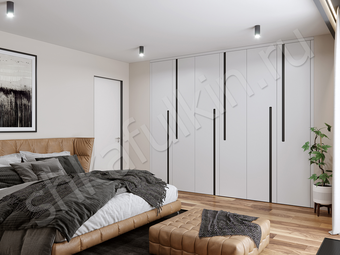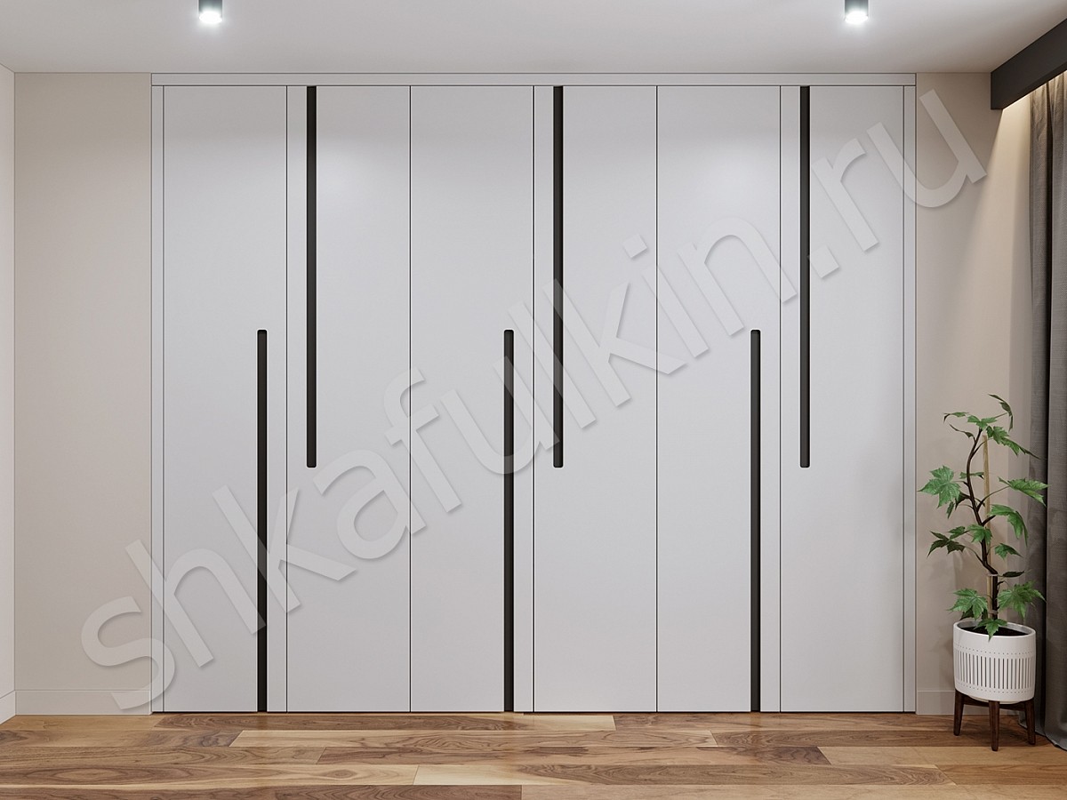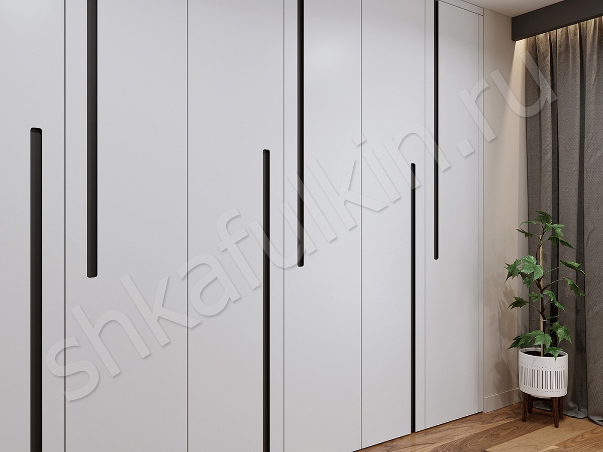 Белый распашной шкаф НОВАТОР с фасадами МДФ и интегрированными ручками выглядит очень современно, стильно и необычно.