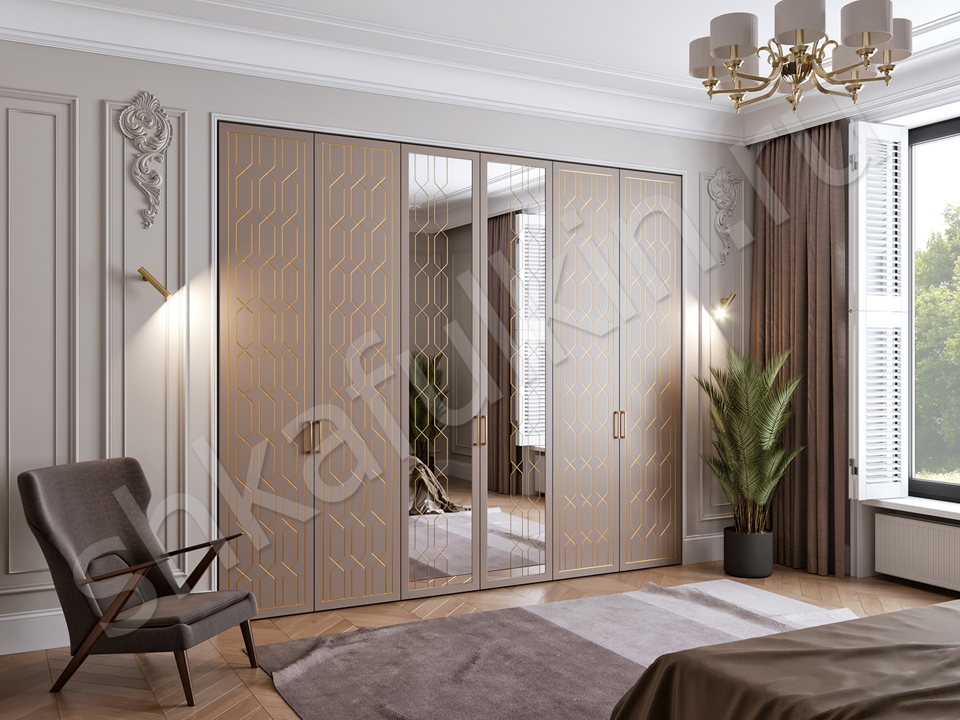 Шкаф Реденталь с авторской фрезеровкой идеально дополнит гостиную или спальню в стиле современной классики или в стиле модерн. Атмосферу и уют могут подчеркнуть небольшие элементы интерьера, такие как статуэтки, антикварное покрытие мебели с белой краской, различные вазы из керамики и прочее.