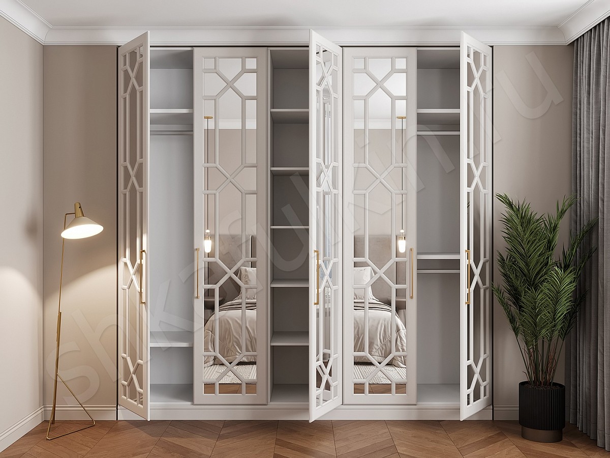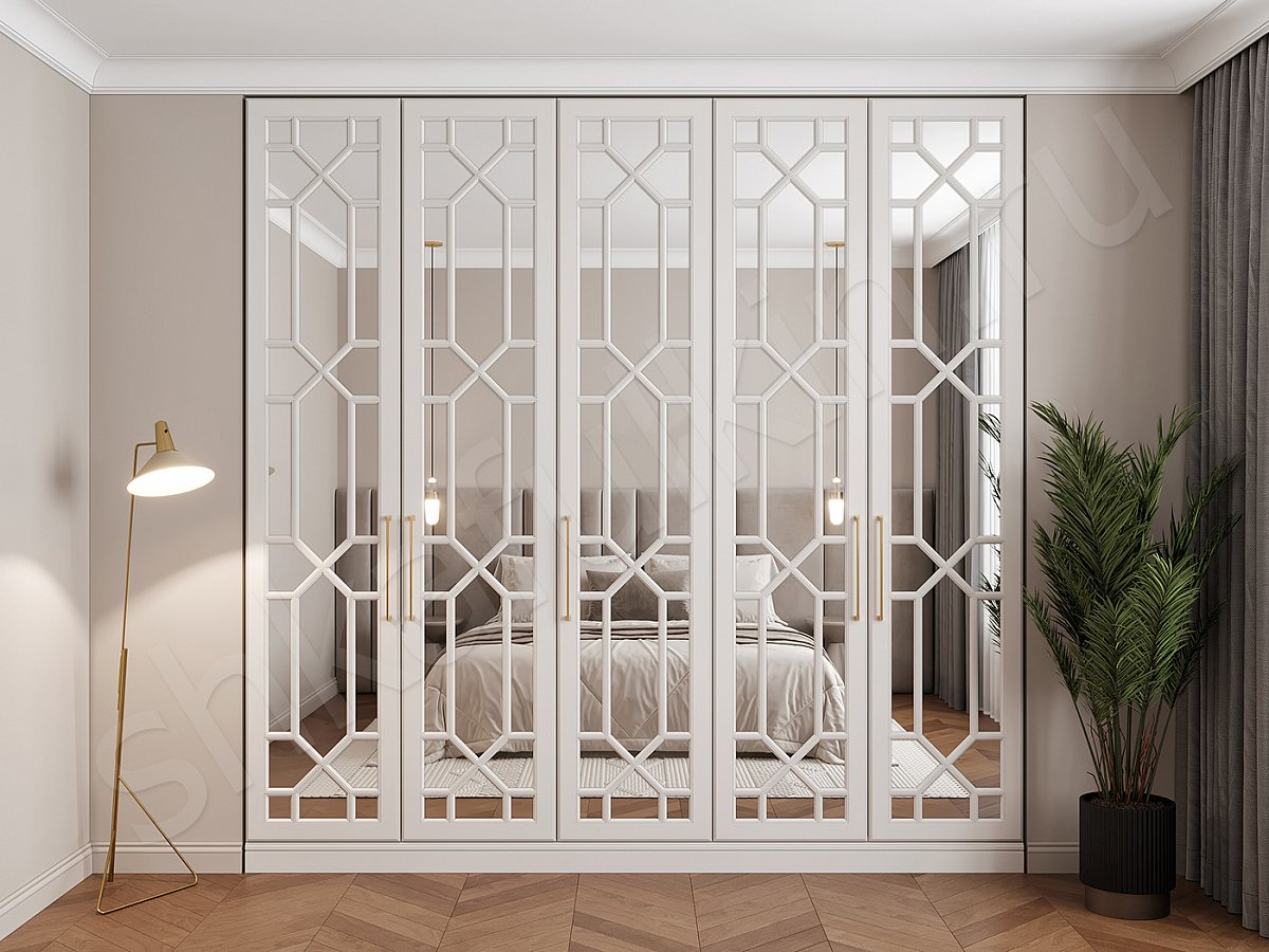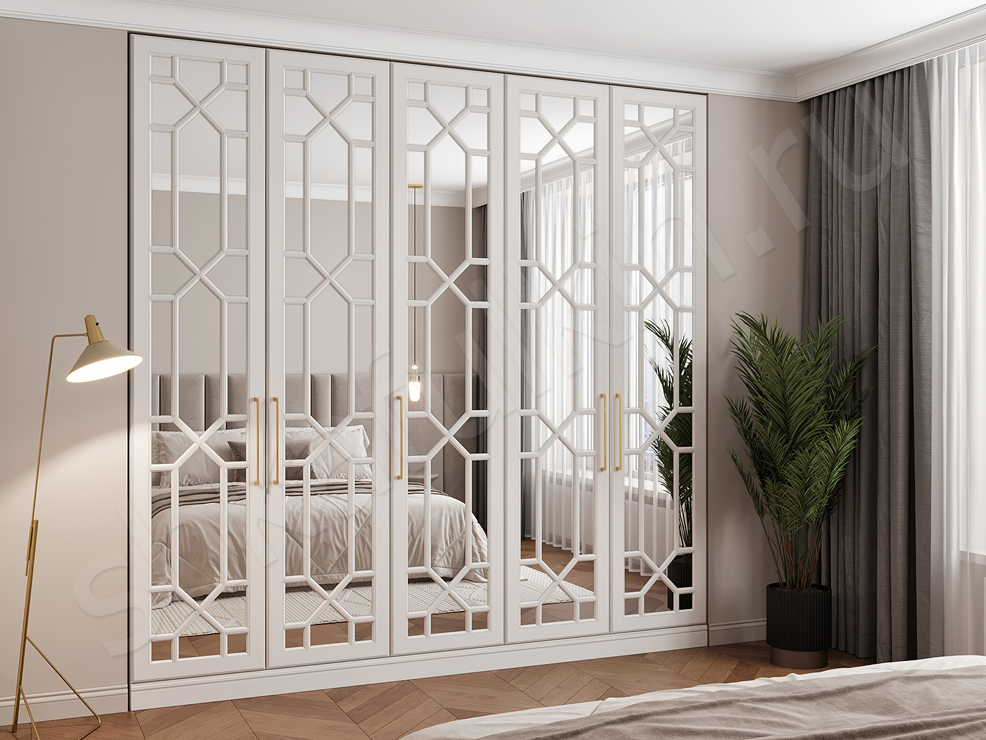 Фасады: МДФ с фрезеровкой, крашенная по NCS с зеркалом.