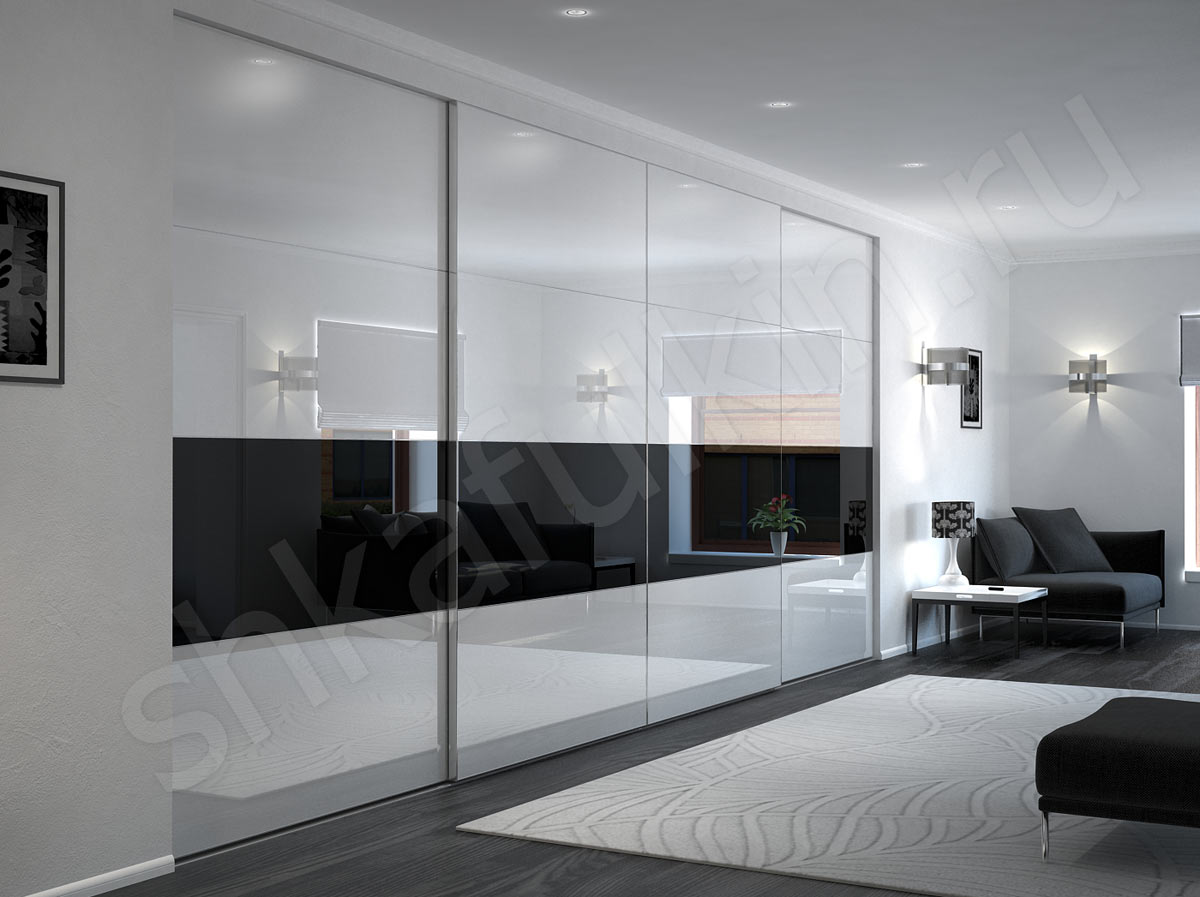 Встроенный шкаф-купе с черно-белым фасадом – это всегда беспроигрышный вариант. На первый взгляд простой и лаконичный дизайн, но шкаф смотрится элегантно и стильно. Такая модель идеально дополнит современный интерьер, оформленный в светлых или контрастных тонах. Необходимо лишь расставить небольшие яркие акценты в виде элементов декора, сувениров, изысканных мелочей. Сочетание черного и белого – это классика, актуальная во все времена.