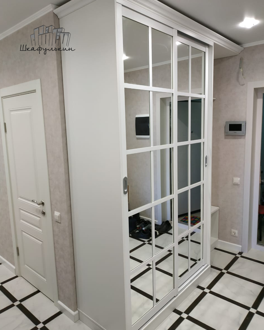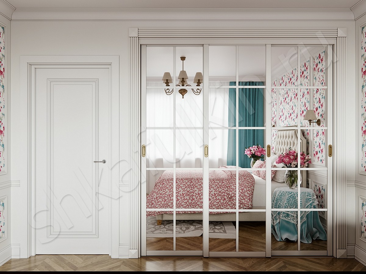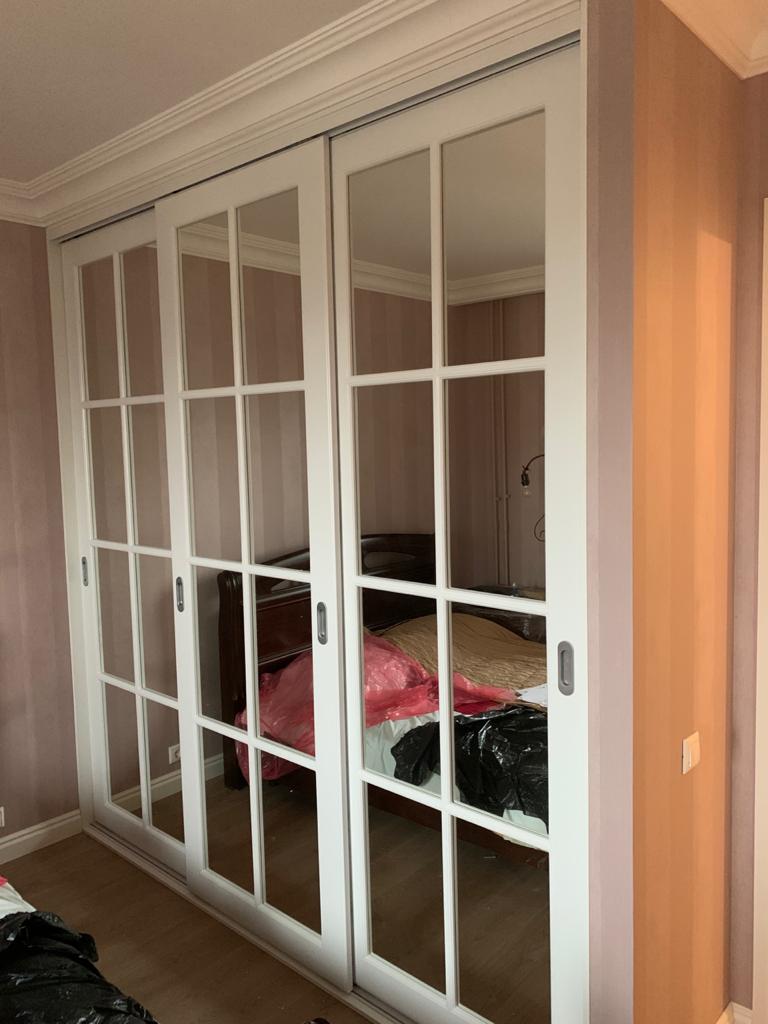 Двери: зеркало с перекрестиями, пленка безопасности, шлегель, ролики.
