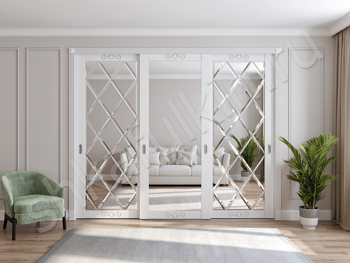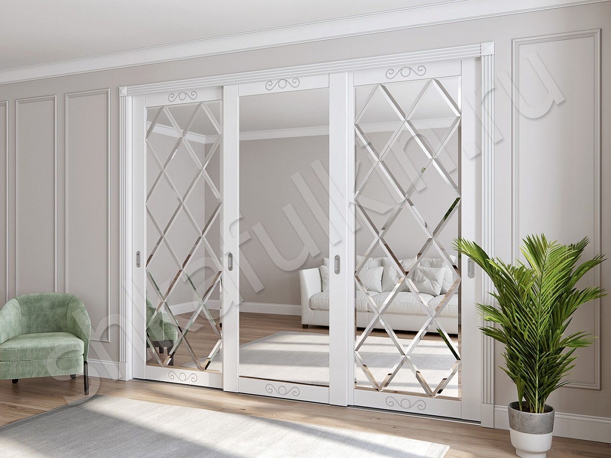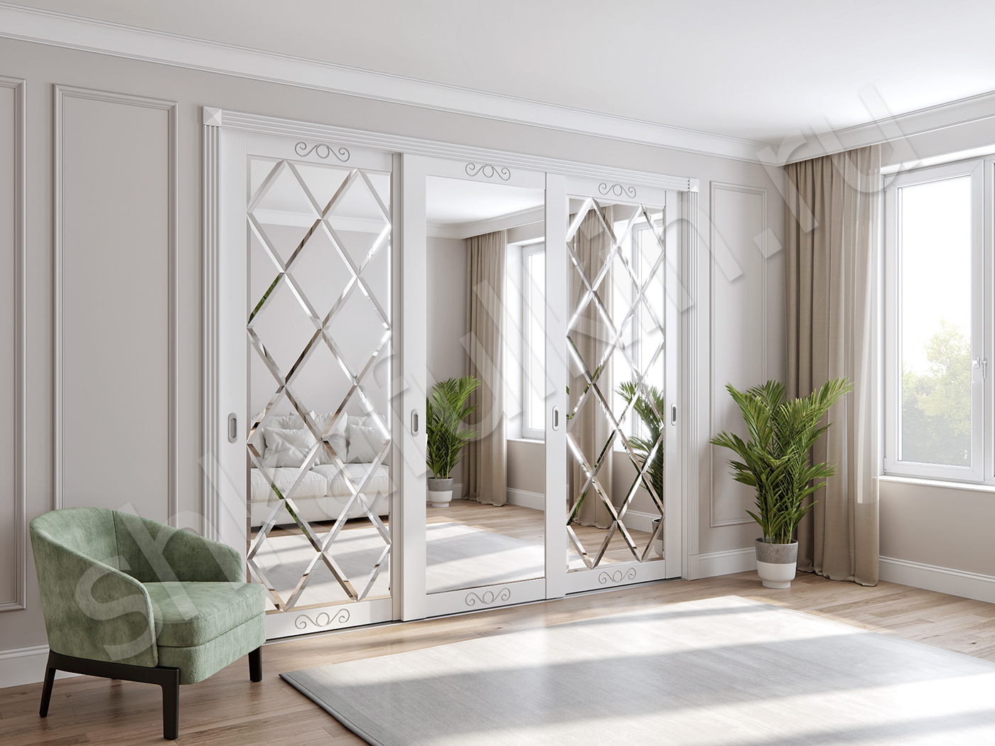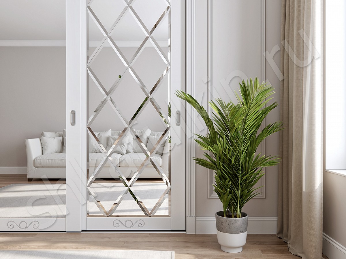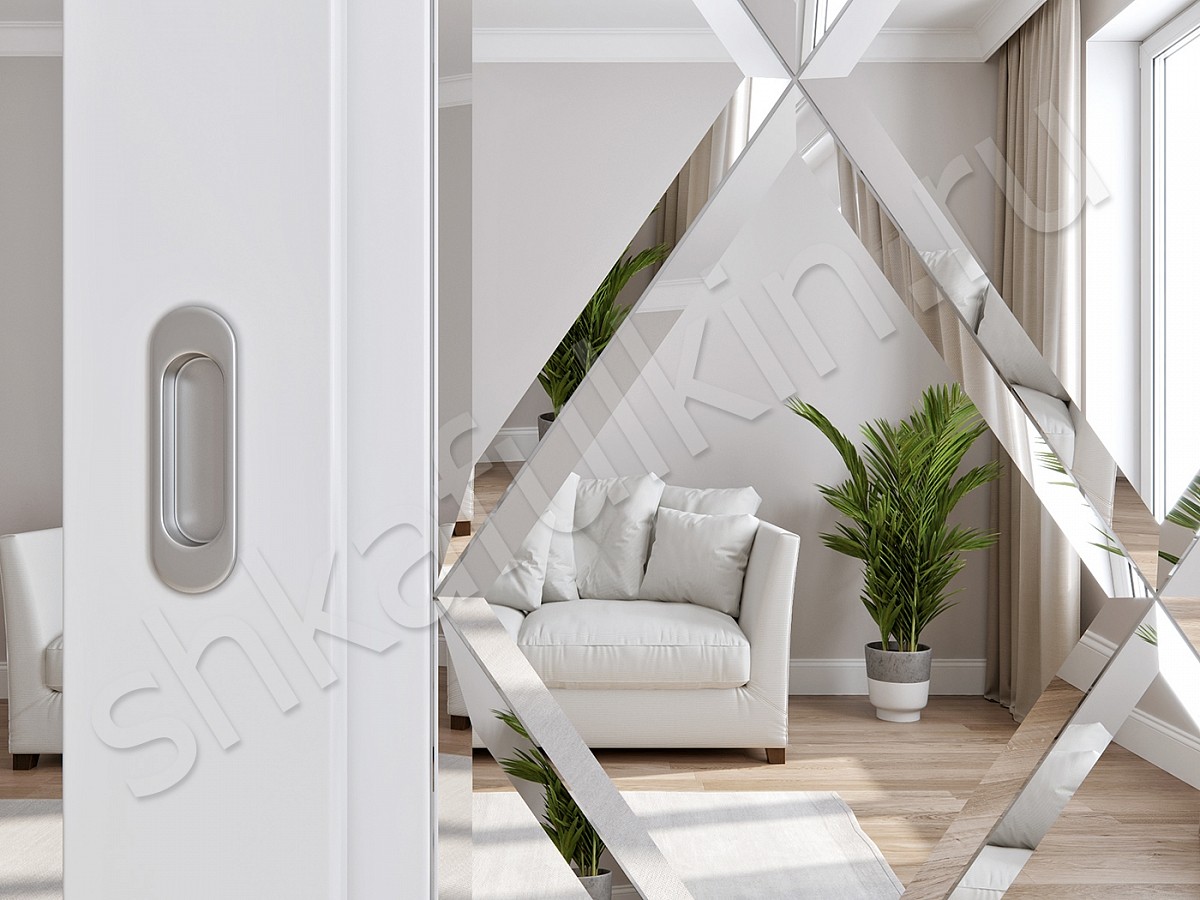 Шкаф-купе с зеркалом Зарина. Фацет выглядит современно и стильно. Фасады выполнены из крашеной панели МДФ с фрезеровкой на выбор. Стилистику модерна подчеркивают врезные ручки. Цвет и дизайн подберем по Вашим предпочтениям.