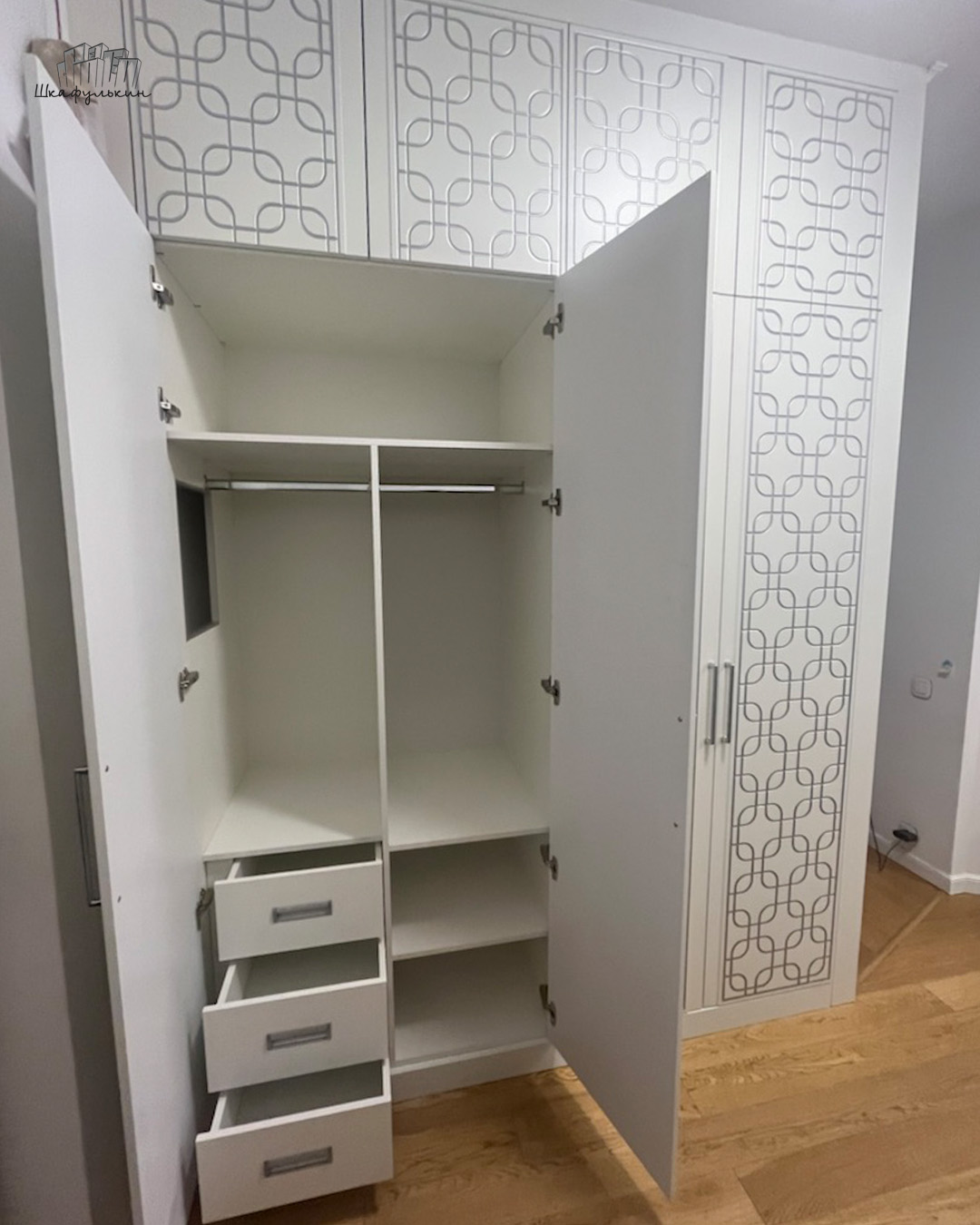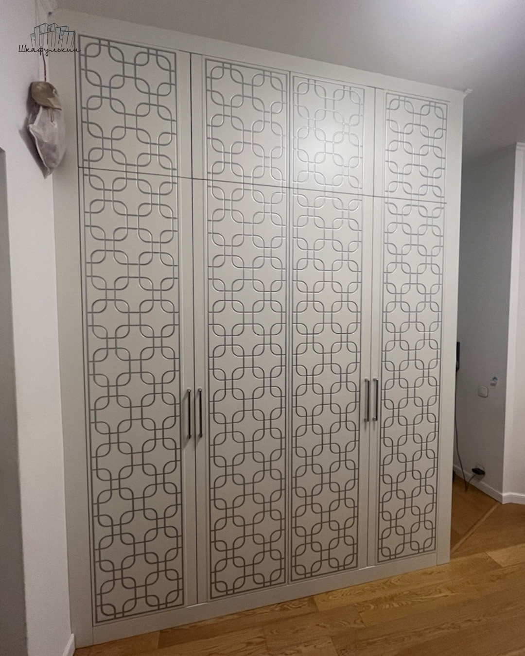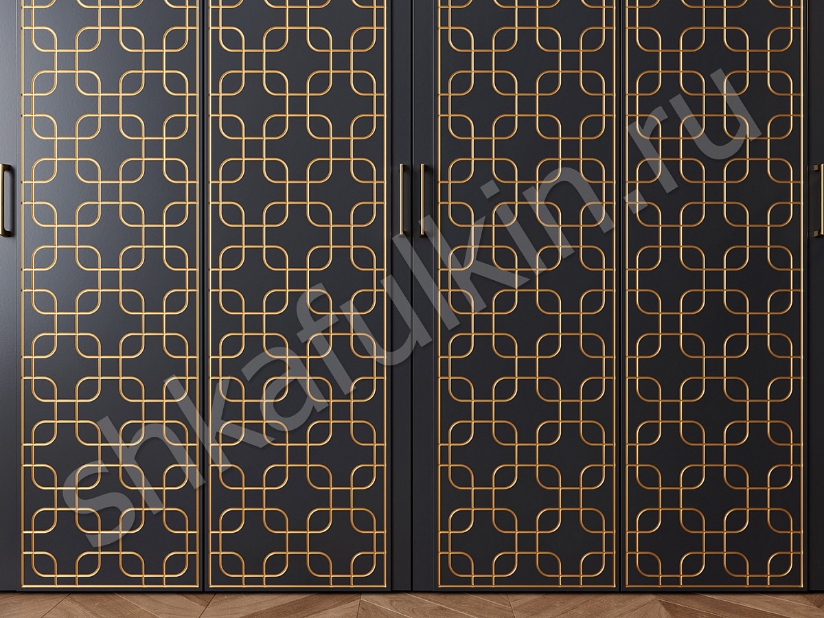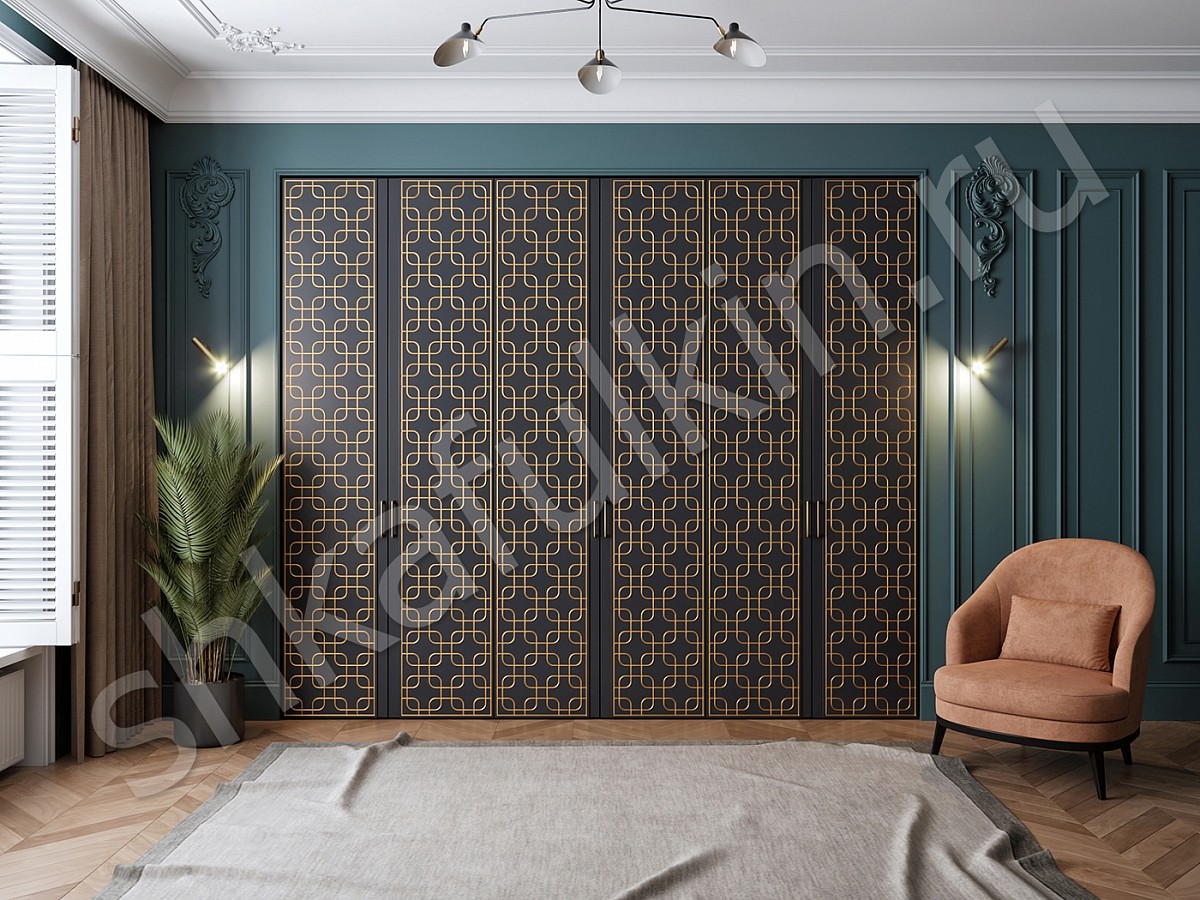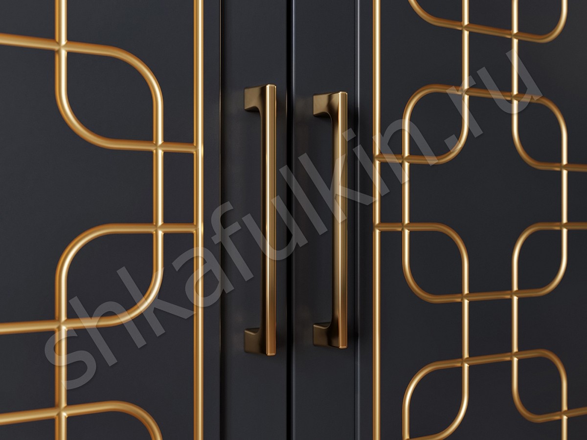 Фасад: из МДФ с фрезеровкой и занижением, крашенный по RAL 7024, патина.